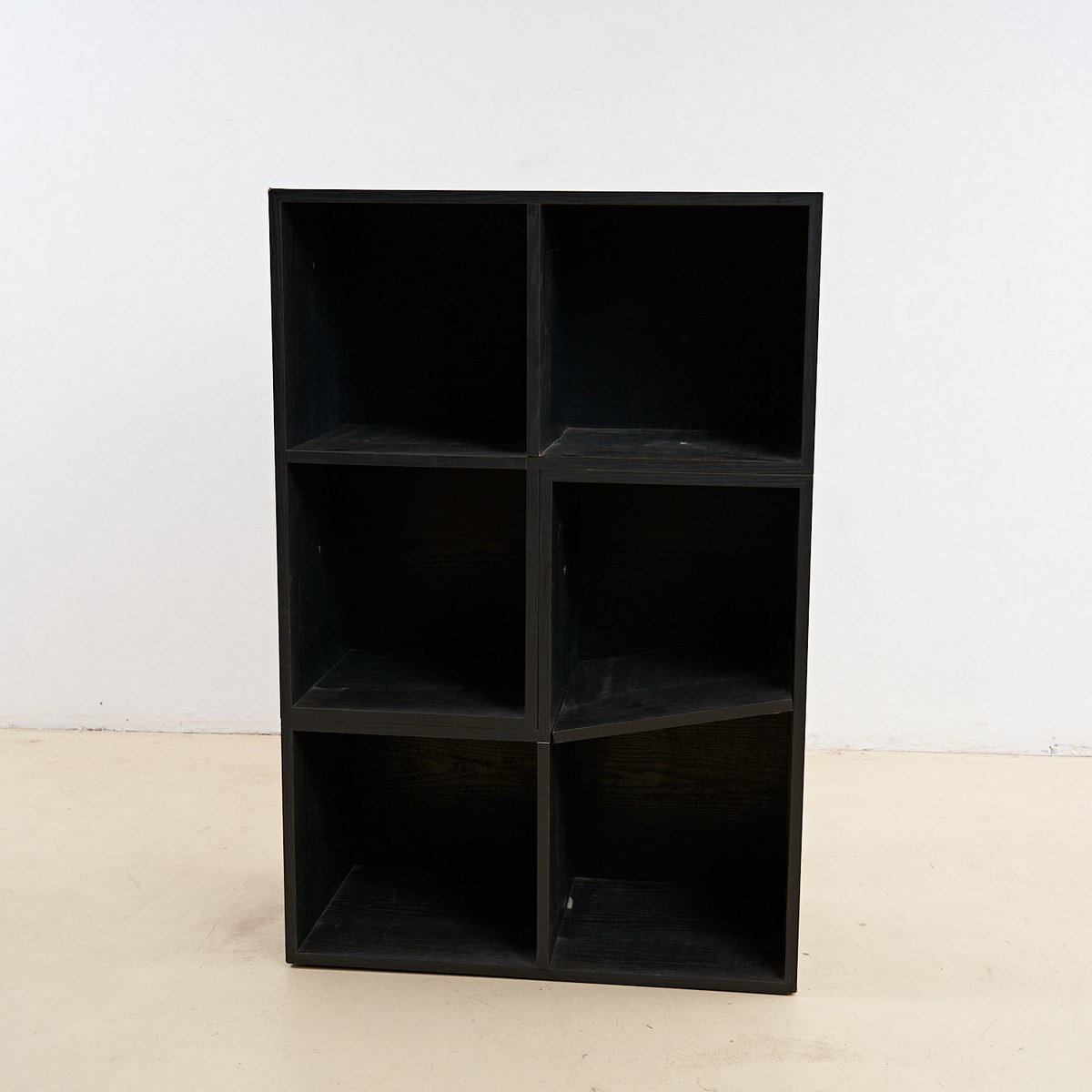 - I dettagli in metallo nero e finiture grezze esaltano il carattere della libreria.