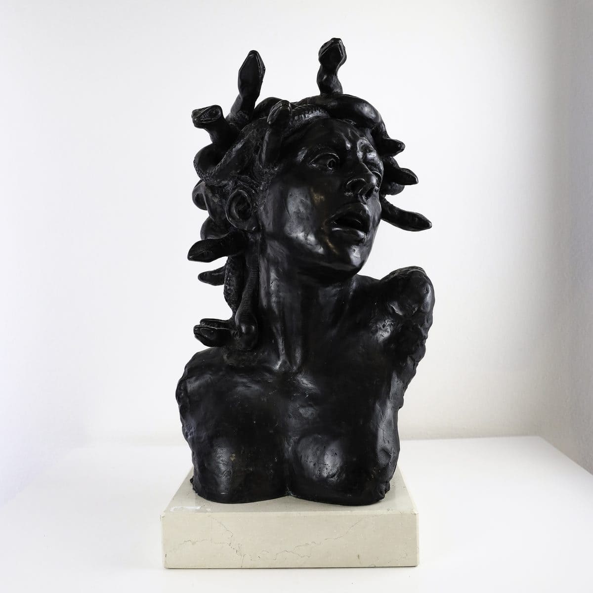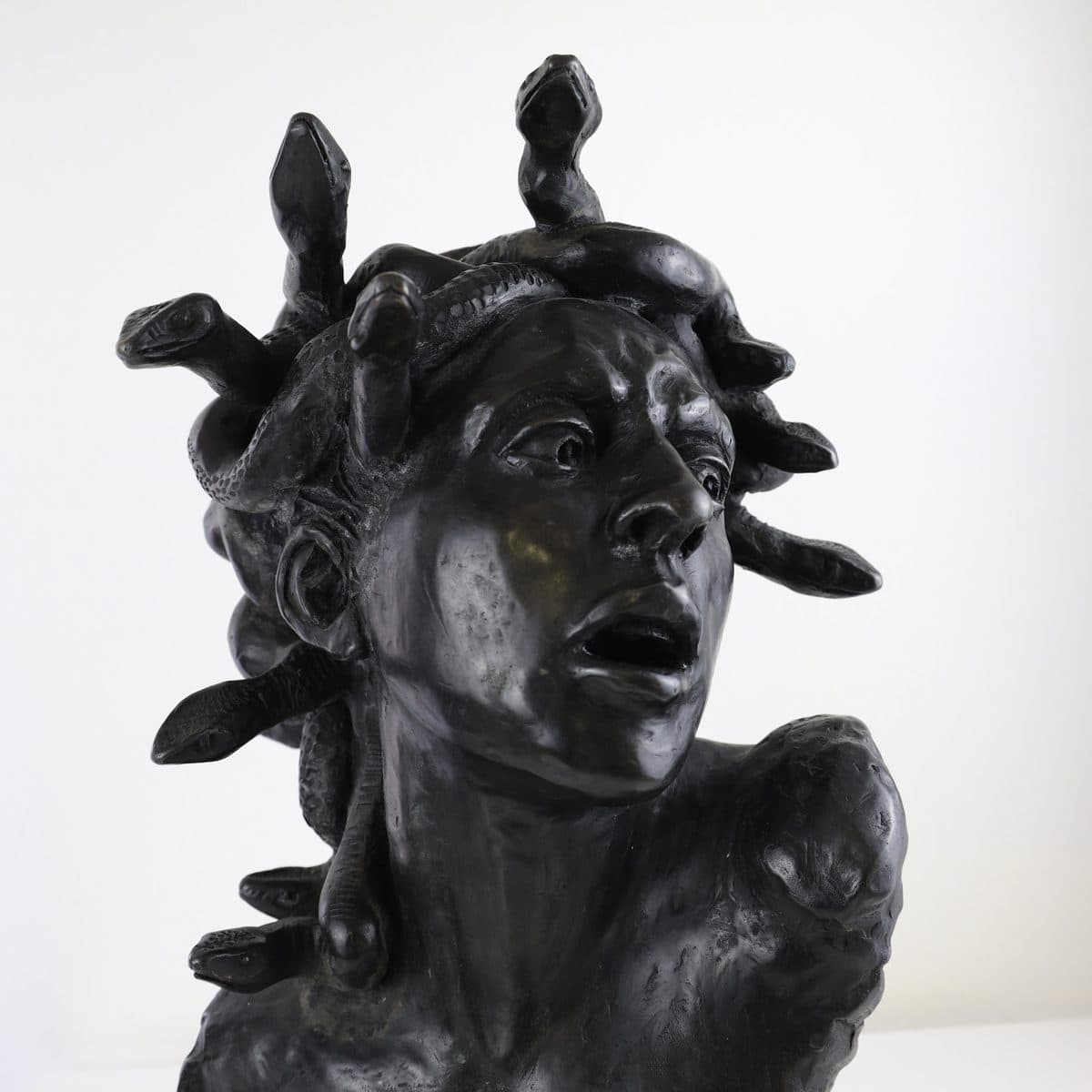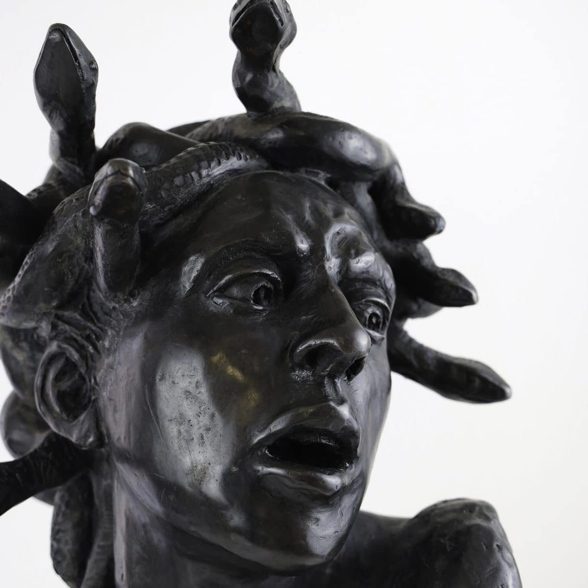 Scultura in bronzo a cera persa, del 900, TESTA DI Medusa