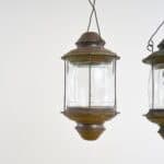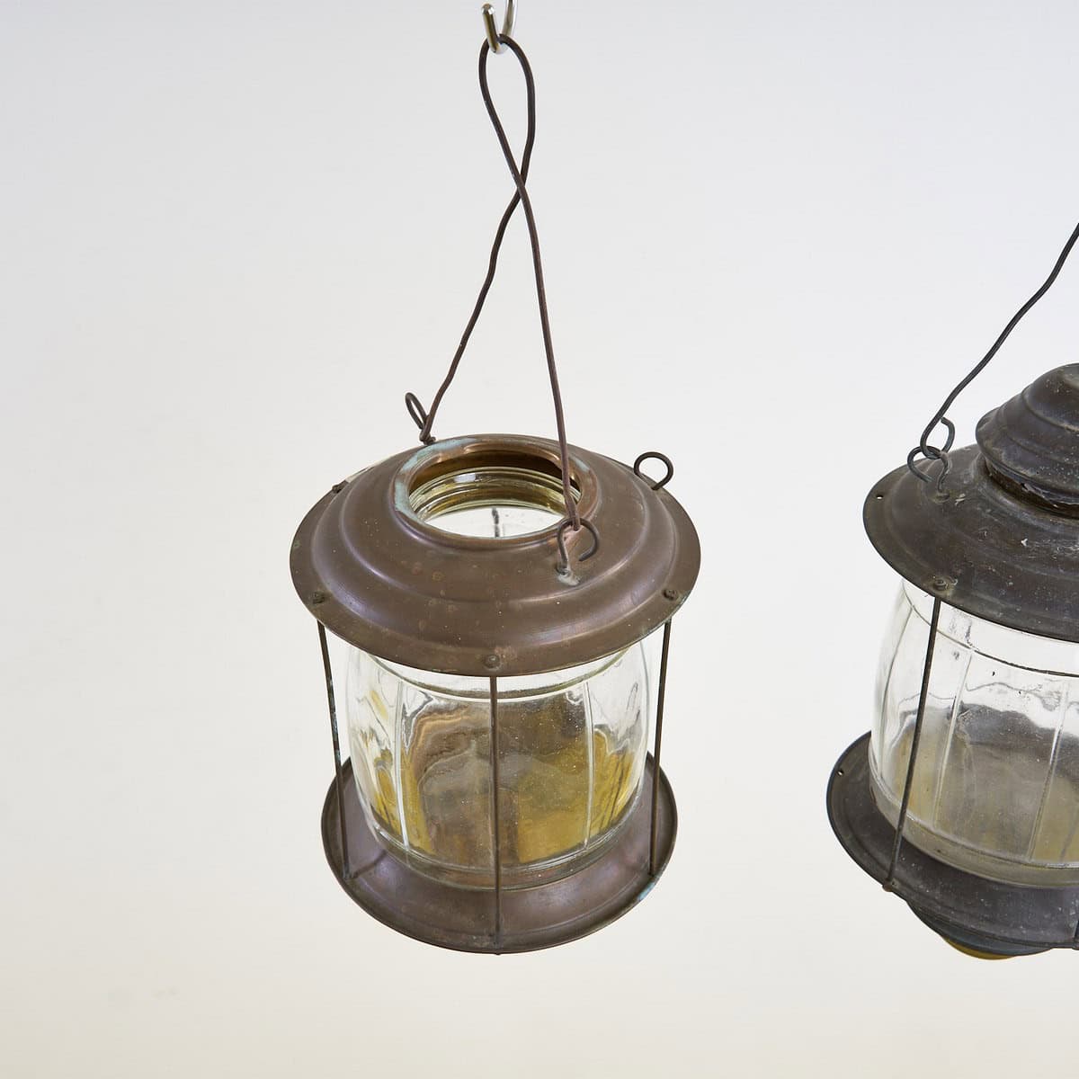 Queste eleganti lanterne portano un tocco di fascino industriale a qualsiasi ambiente grazie al loro design autentico e robusto. Realizzate in ferro e vetro, presentano una struttura cilindrica con de... Queste eleganti lanterne portano un tocco di fascino industriale a qualsiasi ambiente grazie al loro design autentico e robusto. Realizzate in ferro e vetro, presentano una struttura cilindrica con dettagli che richiamano lo stile del XX secolo. Perfette per creare un'atmosfera calda e accogliente, si integrano armoniosamente sia in contesti interni che esterni. Queste lanterne, pur conservando la loro patina originale, offrono una luce soffusa e piacevole, ideale per serate all'aperto o come elementi decorativi all'interno della casa. Un raro pezzo d'antiquariato che combina funzionalita' e bellezza estetica. Altro