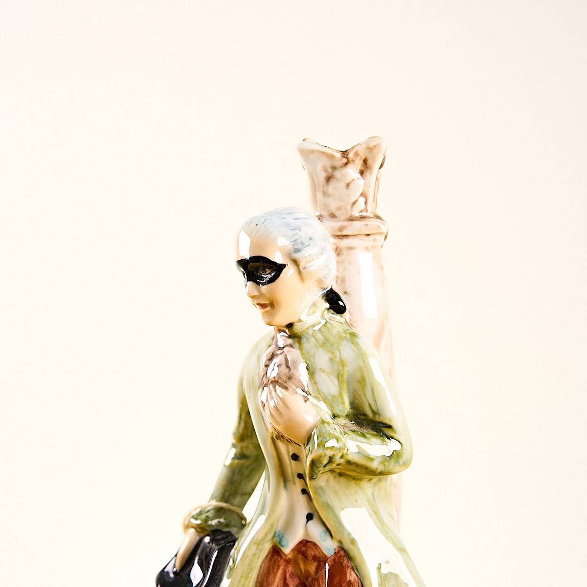candelabro in ceramica vintage made in italy, uomo in maschera