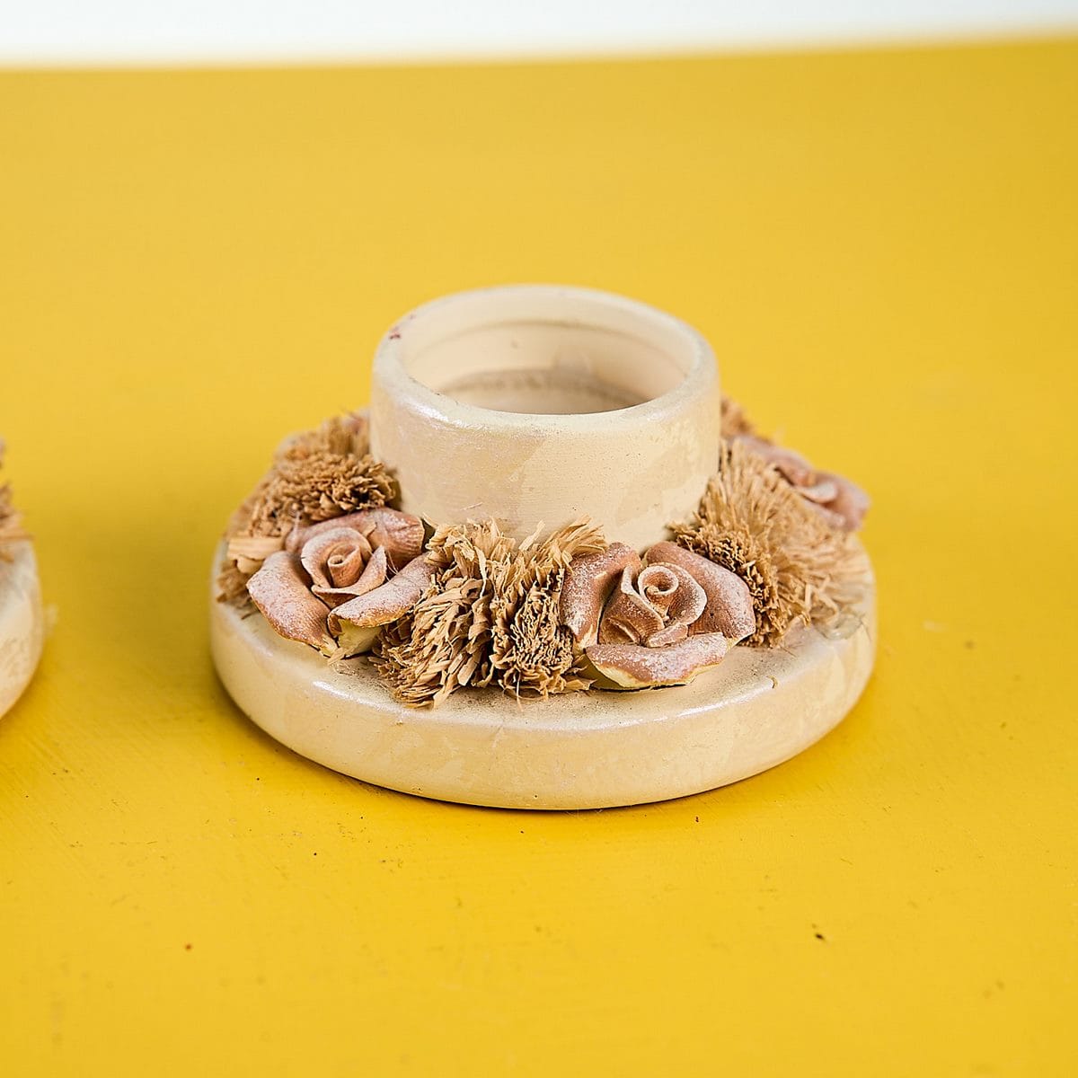 coppia di porta candele vintage con rose in ceramica