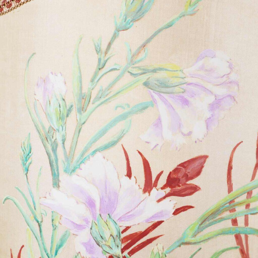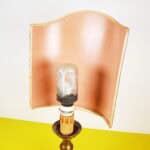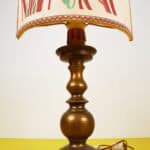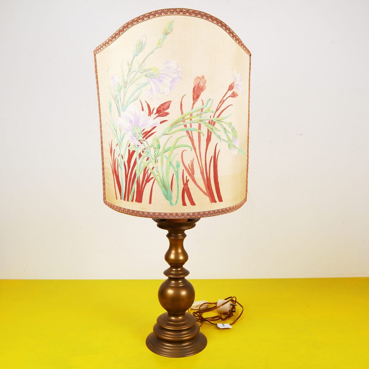 lampada da tavolo vintage in metallo e paralume dipinto a mano
