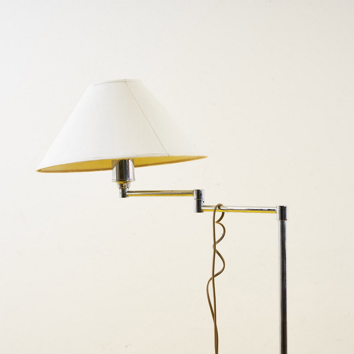 Scopri l'eleganza senza tempo di questa lampada da terra Mid-Century, un pezzo che non solo illumina, ma arricchisce ogni spazio. La struttura in metallo lucido si unisce a una raffinata paralume... Scopri l'eleganza senza tempo di questa lampada da terra Mid-Century, un pezzo che non solo illumina, ma arricchisce ogni spazio. La struttura in metallo lucido si unisce a una raffinata paralume con tonalita' gialle, creando un contrasto affascinante. La lampada presenta un design semplice ma sofisticato, facilmente adattabile sia a interni moderni che a spazi piu' tradizionali. Con il suo braccio regolabile, ti permettera' di orientare la luce dove piu' ne hai bisogno. Un'ottima scelta per gli amanti del design e per chi cerca un tocco di classe esclusivo nella propria casa. Altro