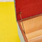 Scopri questo cofanetto vintage, un pezzo unico che combina praticita' e stile. Realizzato con materiali di alta qualita', presenta un design elegante e originale. La finitura in legno e... Scopri questo cofanetto vintage, un pezzo unico che combina praticita' e stile. Realizzato con materiali di alta qualita', presenta un design elegante e originale. La finitura in legno e' caratterizzata da un affascinante gioco di colori, con una combinazione di tonalita' scure e chiari che lo rendono un elemento d'arredo versatile adatto a qualsiasi ambiente. L'interno offre ampio spazio per riporre i tuoi oggetti, mentre il coperchio si apre con un meccanismo fluido, facile da usare. Questo cofanetto non e' solo un contenitore, ma un vero e proprio oggetto di design che reinterpreta il concetto di funzionalita' rispetto all'estetica. Altro