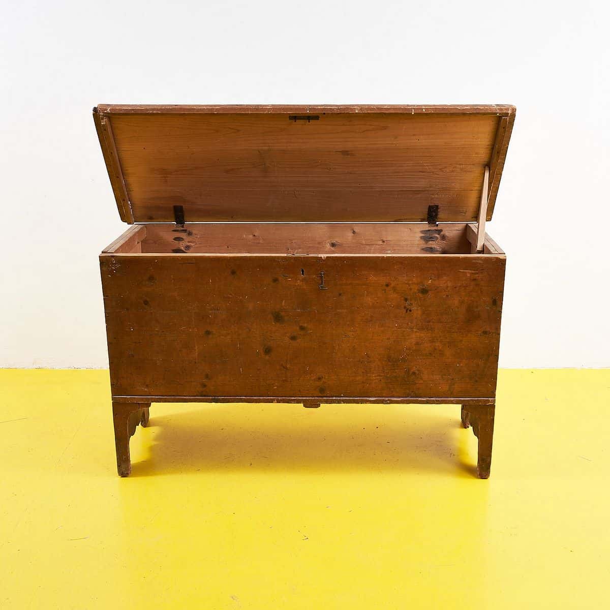 Scopri questa affascinante cassapanca vintage in legno massello, un perfetto esempio di design classico. Con il suo stile rustico e le linee eleganti, questo pezzo non e' solo un oggetto funziona... Scopri questa affascinante cassapanca vintage in legno massello, un perfetto esempio di design classico. Con il suo stile rustico e le linee eleganti, questo pezzo non e' solo un oggetto funzionale, ma anche un elemento decorativo che dara' carattere a qualsiasi ambiente. La cassapanca, provvista di un ampio spazio interno, e' ideale per riporre coperte, giocattoli o oggetti vari. La patina del legno racconta storie di un passato ricco e l'usura del tempo ne esalta il carattere. Un'aggiunta perfetta per chi ama l'arredamento unico e con personalita'. Altro