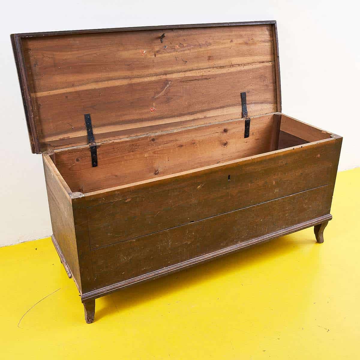 Scopri questa affascinante cassapanca vintage in legno massello, un perfetto esempio di design classico. Con il suo stile rustico e le linee eleganti, questo pezzo non e' solo un oggetto funziona... Scopri questa affascinante cassapanca vintage in legno massello, un perfetto esempio di design classico. Con il suo stile rustico e le linee eleganti, questo pezzo non e' solo un oggetto funzionale, ma anche un elemento decorativo che dara' carattere a qualsiasi ambiente. La cassapanca, provvista di un ampio spazio interno, e' ideale per riporre coperte, giocattoli o oggetti vari. La patina del legno racconta storie di un passato ricco e l'usura del tempo ne esalta il carattere. Un'aggiunta perfetta per chi ama l'arredamento unico e con personalita'. Altro