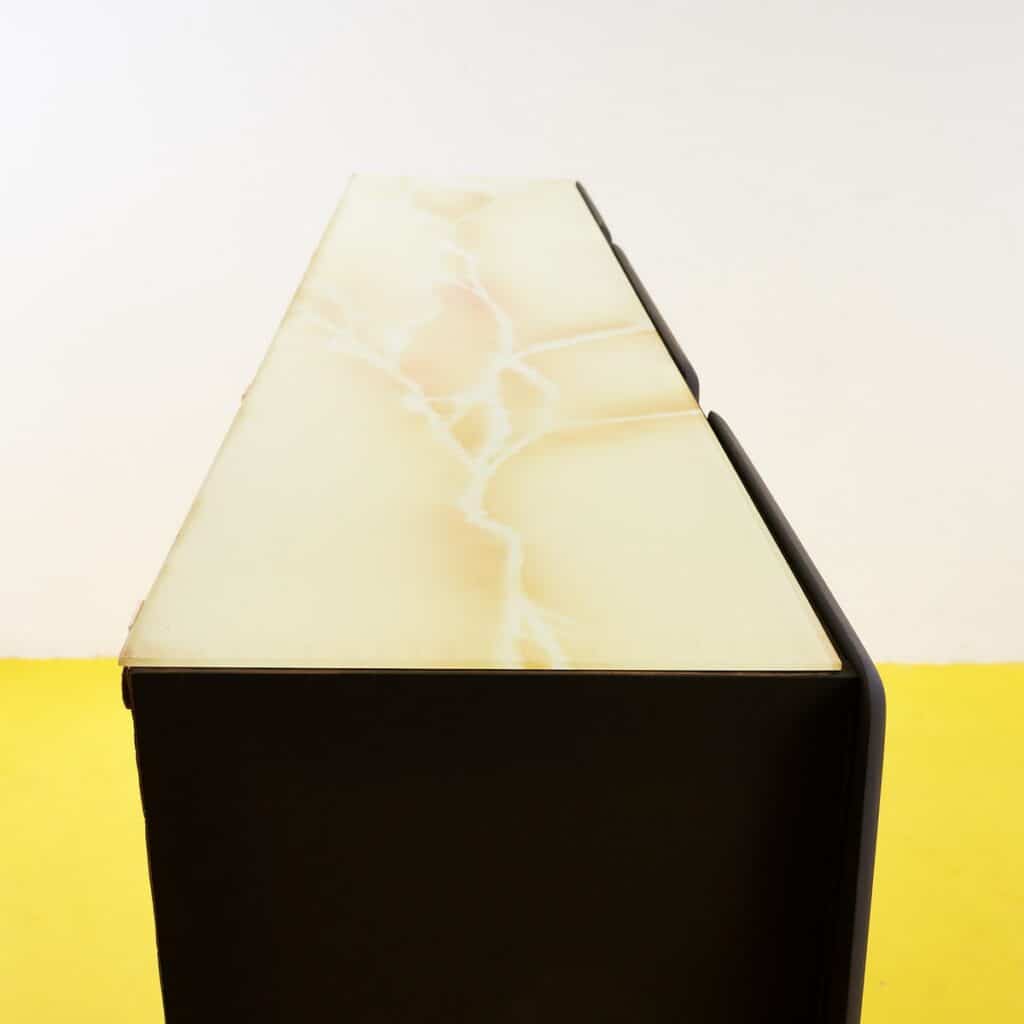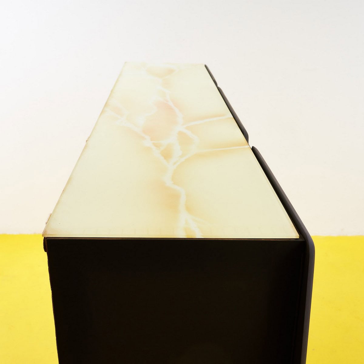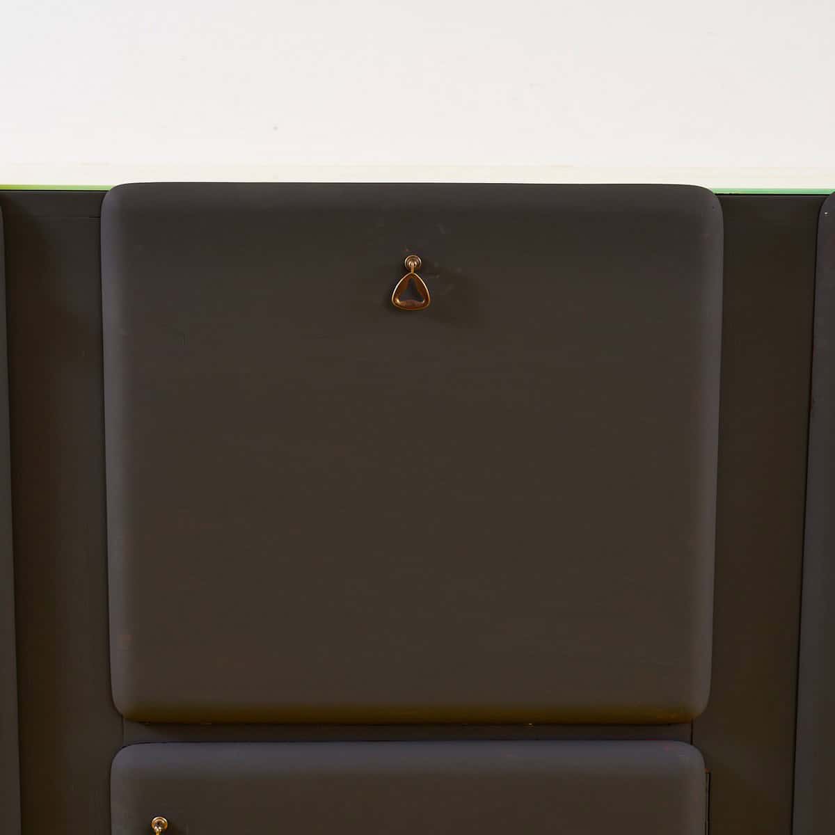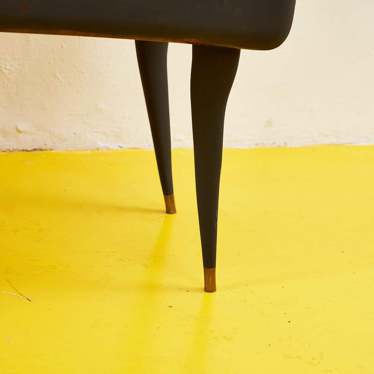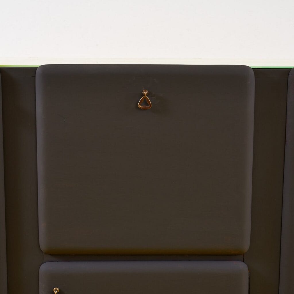 Scoprite l'eleganza senza tempo di questa credenza dal design mid-century. Con un'abbinamento di tonalita' scure e dettagli dorati, il suo aspetto unico si distingue per delle curve aff... Scoprite l'eleganza senza tempo di questa credenza dal design mid-century. Con un'abbinamento di tonalita' scure e dettagli dorati, il suo aspetto unico si distingue per delle curve affascinanti e una funzionalita' pratica. All'interno, ampi spazi di stoccaggio offrono soluzioni per organizzare i vostri oggetti con stile. Perfetta per arredare un soggiorno o una sala da pranzo, questa credenza e' piu' di un semplice mobile: e' un pezzo di design che racconta una storia. Ogni apertura rivela un interno ben curato, pronto ad accogliere i vostri tesori in modo ordinato e chic. Altro