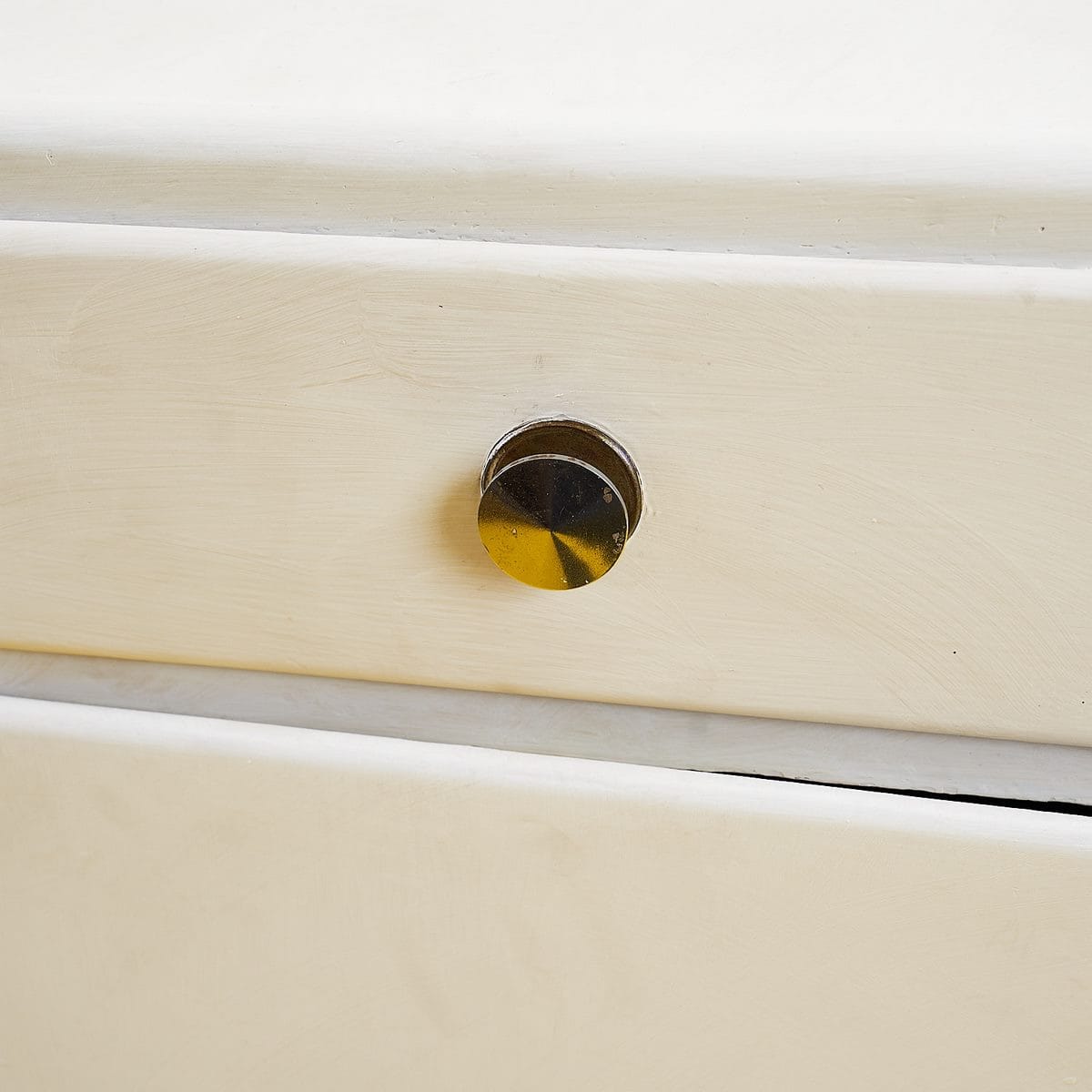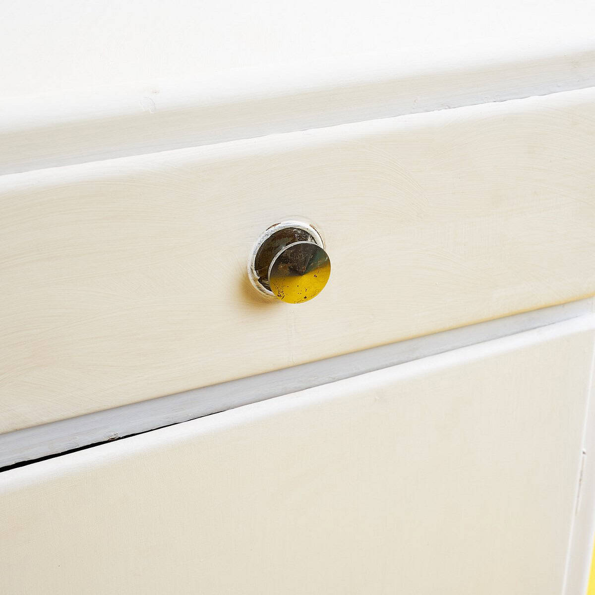 Questo affascinante mobiletto vintage e' un perfetto esempio di design e funzionalita'. Caratterizzato da un elegante finitura bianca, il pezzo presenta due cassetti e un armadietto inferior... Questo affascinante mobiletto vintage e' un perfetto esempio di design e funzionalita'. Caratterizzato da un elegante finitura bianca, il pezzo presenta due cassetti e un armadietto inferiore con ante, ideale per riporre oggetti e mantenere l'ordine. Gli accenti dorati sui pomelli e le maniglie conferiscono un tocco di classe, mentre il design semplice e pulito si adatta a diversi stili d'arredo. Perfetto per un soggiorno, un'entrata o anche come elemento decorativo in camera da letto, questo mobiletto e' non solo un oggetto funzionale, ma anche un pezzo di design che racconta una storia. Altro