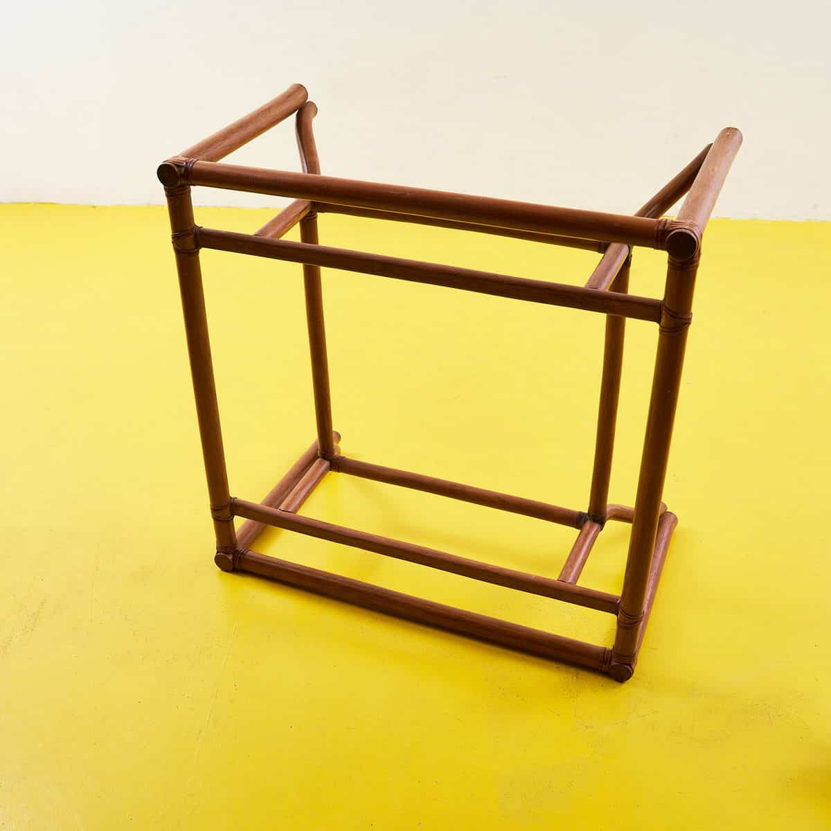 Questo tavolino, dal design sofisticato, si caratterizza per l'intreccio magistrale del legno che compone la sua struttura. Le sue linee pulite e armoniose evocano un'estetica moderna e raff... Questo tavolino, dal design sofisticato, si caratterizza per l'intreccio magistrale del legno che compone la sua struttura. Le sue linee pulite e armoniose evocano un'estetica moderna e raffinata, rendendolo un oggetto versatile adatto a vari ambienti. La firma discreta sull'intreccio superiore ne testimonia l'autenticita' e l'attenzione ai dettagli. Perfetto per arricchire un salotto o un angolo accogliente, rappresenta una sintesi perfetta tra funzionalita' e design. Le leggerissime tracce del tempo non fanno che accrescerne il fascino, testimoniando anni di storia e conservazione impeccabile. Altro