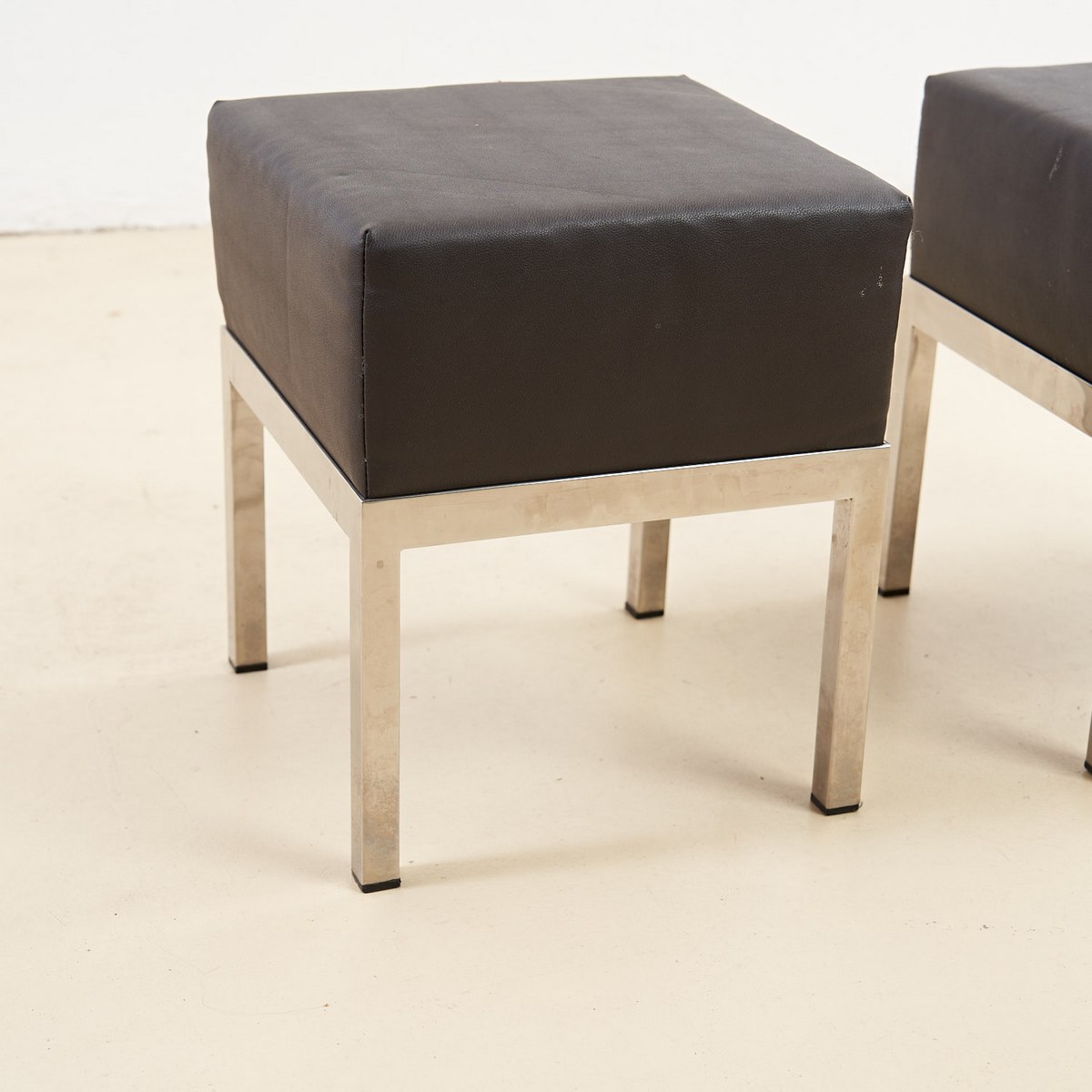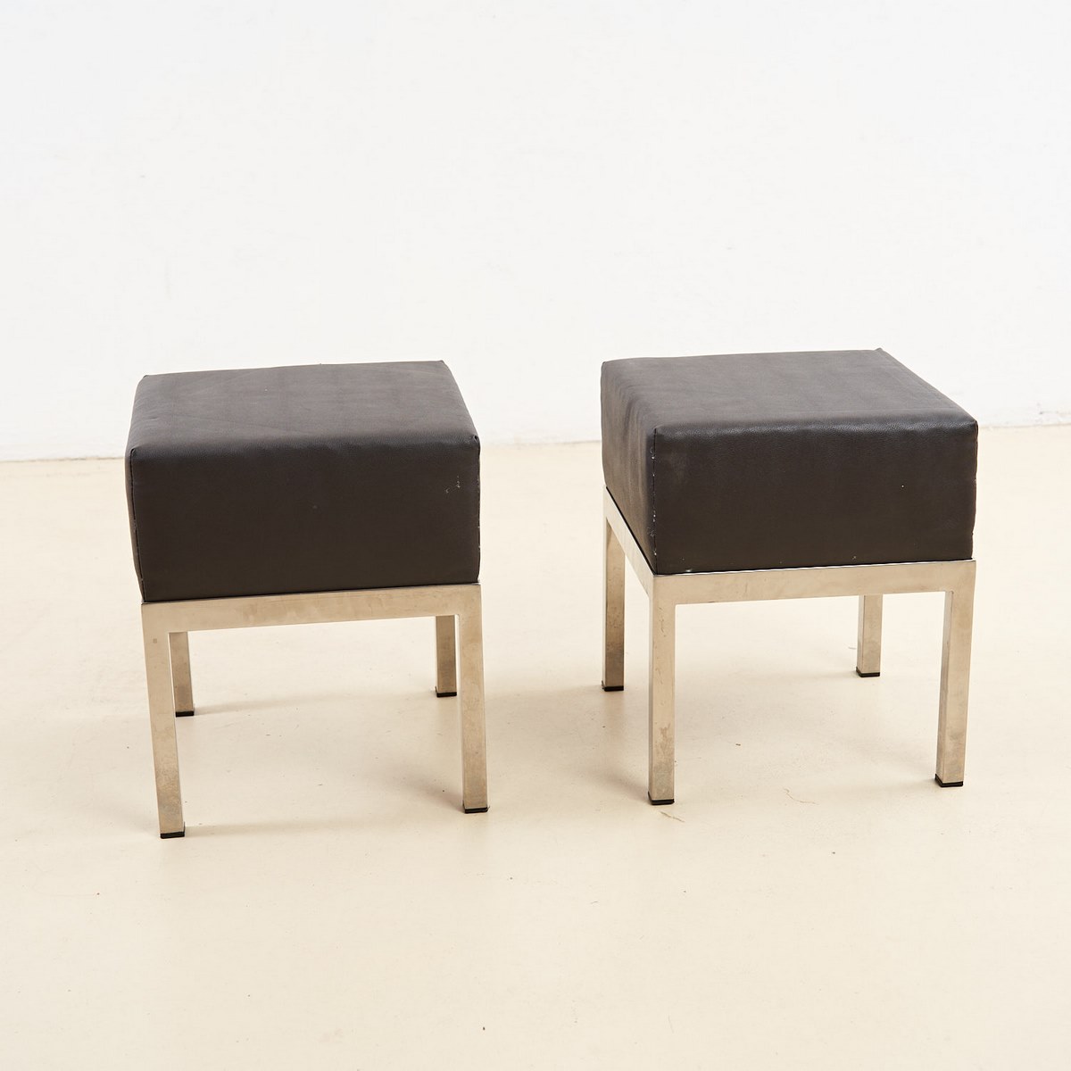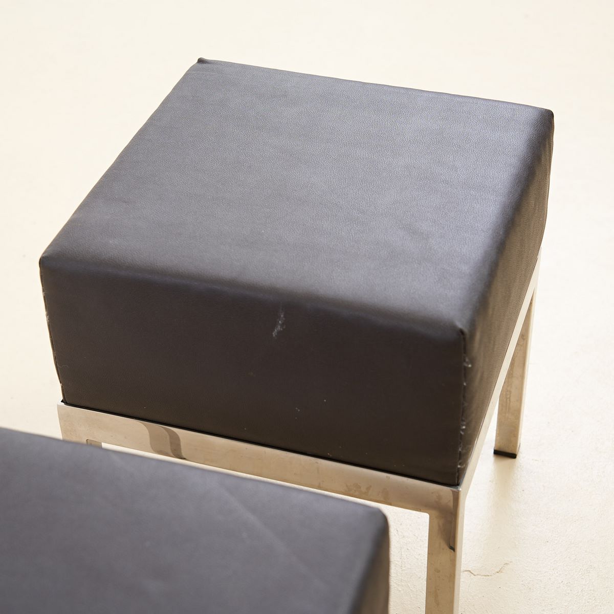 COPPIA DI SGABELLI VINTAGE IN METALLO CROMATO E SEDUTA MORBIDA
