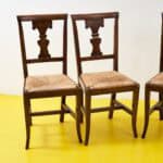 Questa affascinante collezione di sedie in legno, risalente a un periodo d'oro del design, offre un tocco di eleganza rustica al tuo ambiente. Caratterizzate da linee sinuose e un delicato intagl... Questa affascinante collezione di sedie in legno, risalente a un periodo d'oro del design, offre un tocco di eleganza rustica al tuo ambiente. Caratterizzate da linee sinuose e un delicato intaglio dello schienale, queste sedie uniscono estetica e funzionalita'. La seduta in paglia, lavorata artisticamente, garantisce comfort e resistenza, rendendole perfette per qualsiasi cena o riunione familiare. Ideali per un arredamento vintage o per chi cerca un pezzo di storia da integrare nel proprio spazio moderno, queste sedie evocano un senso di calore e accoglienza. Un'opportunita' imperdibile per gli amanti del design classico. Altro