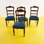 Questo splendido set di sedie incarna l'eleganza del design classico abbinata a una funzionalita' senza tempo. Le sedie, realizzate in robusto legno, vantano una seduta rivestita in un ricco... Questo splendido set di sedie incarna l'eleganza del design classico abbinata a una funzionalita' senza tempo. Le sedie, realizzate in robusto legno, vantano una seduta rivestita in un ricco tessuto verde che conferisce un tocco di colore e comfort. La lavorazione del legno e' curata nei minimi dettagli, con schienali dal design elegante che si inseriscono perfettamente in un contesto sia vintage che moderno. Ideali per un salotto o una sala da pranzo che vogliono distinguersi per classe e stile. Queste sedie, pur mostrando lievi segni d'usura, aggiungono carattere e autenticita' all'ambiente domestico. Un'opportunita' unica per possedere pezzi di arredamento esclusivi che raccontano una storia. Altro