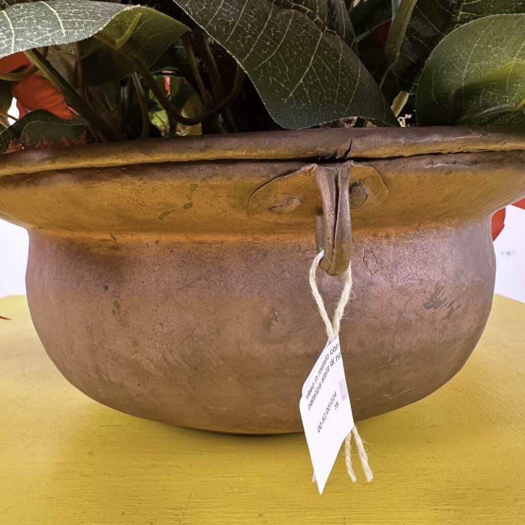 vaso in metallo con composizione natalizia stelle di natale