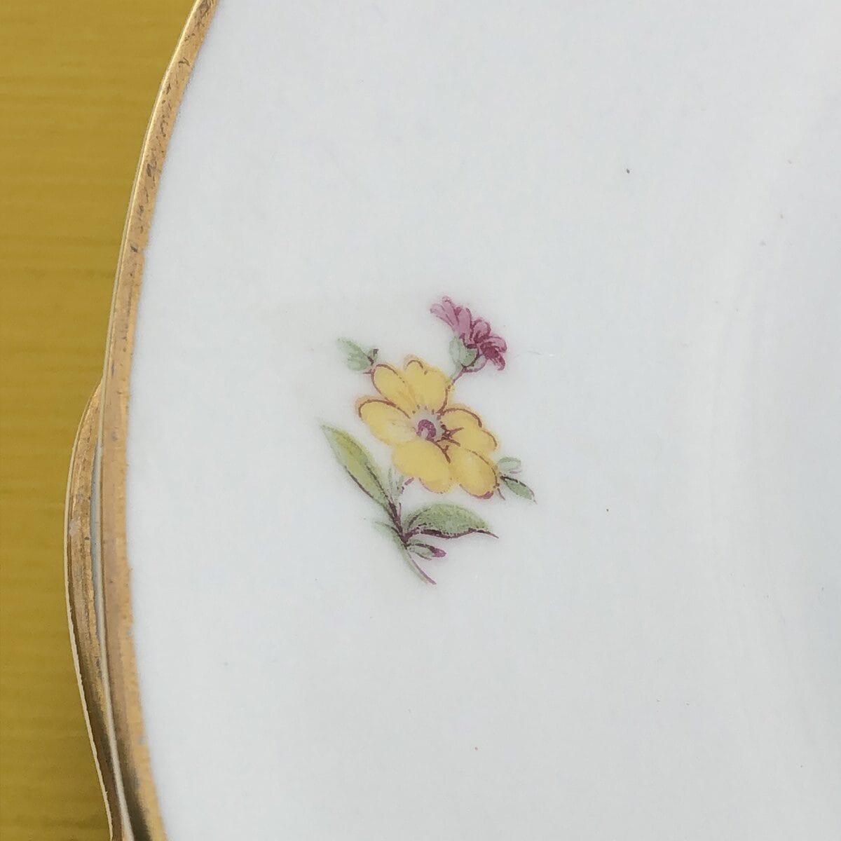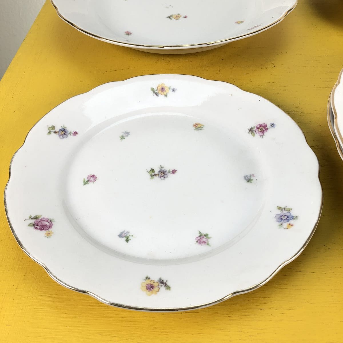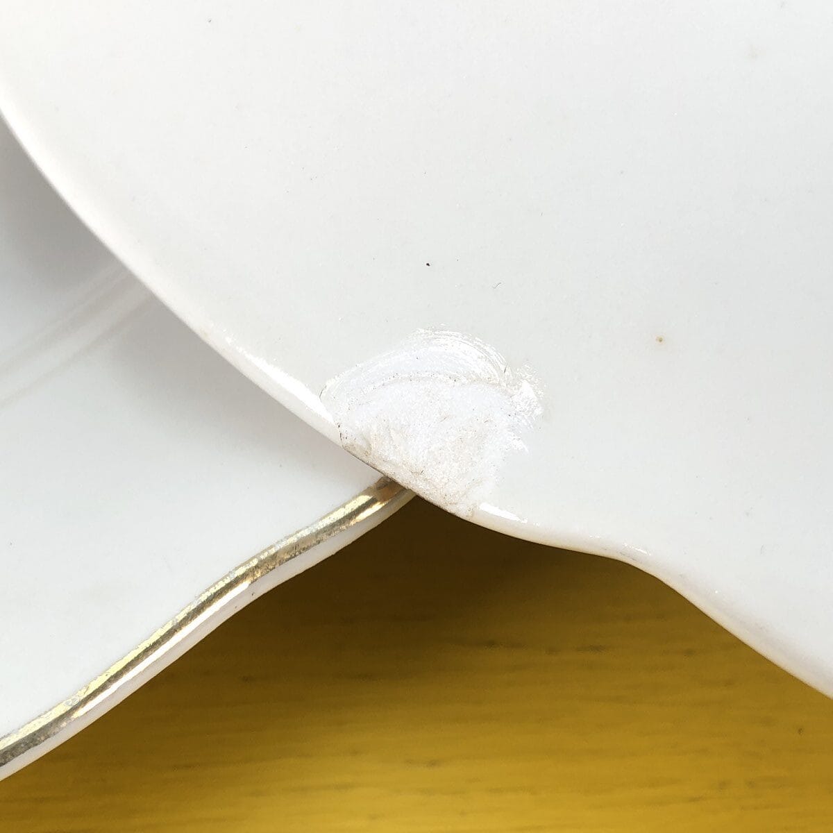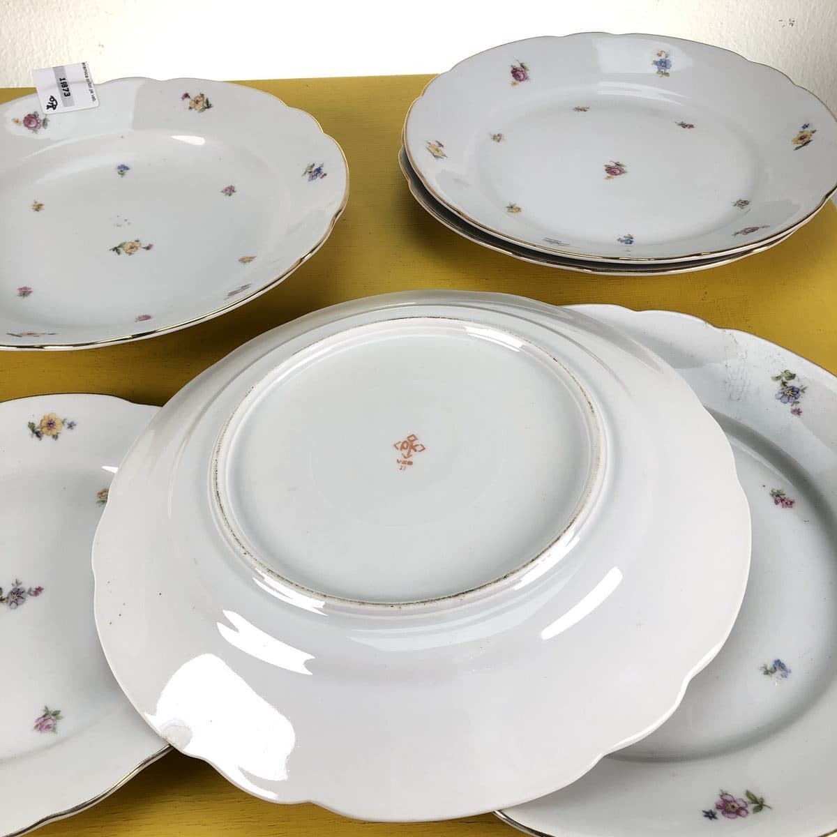 - un piatto da dolce, uno fondo e quattro piani. - un piatto presenta imperfezioni