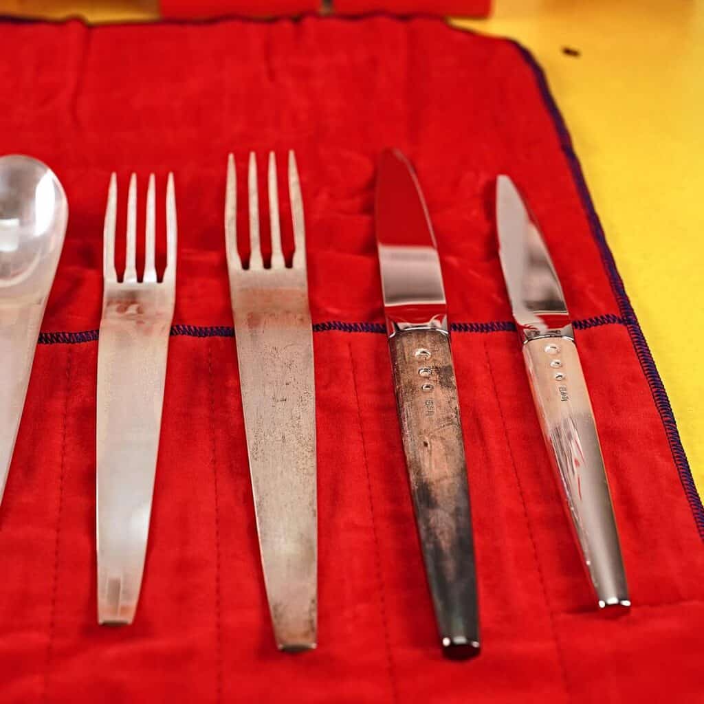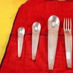 - set composto da: 2 forchette, 1 cucchiaio, 2 cucchiaini, 2 coltelli