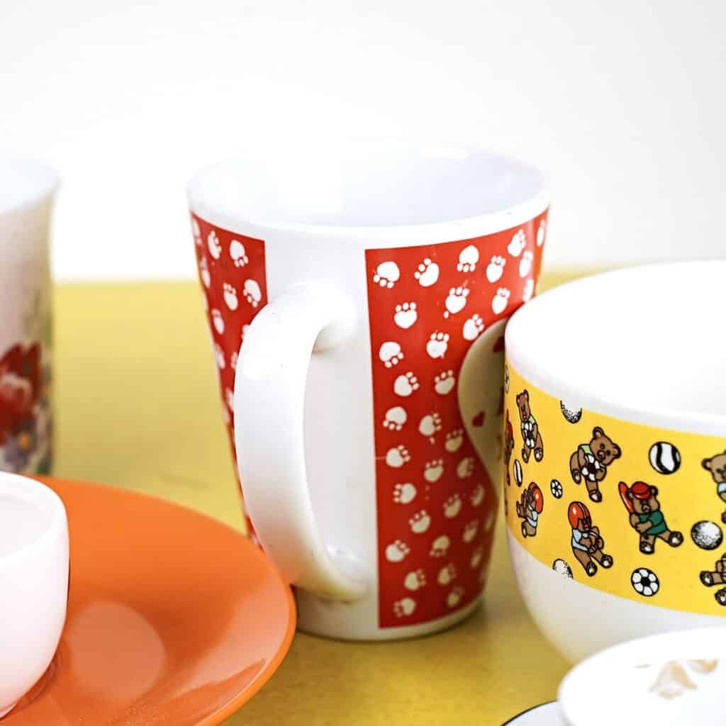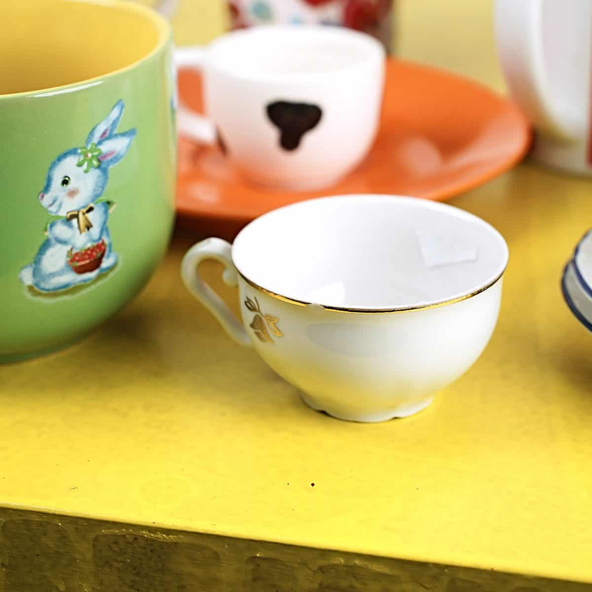lotto di sei tazze e 4 tazzine più tre piattini con decori vari