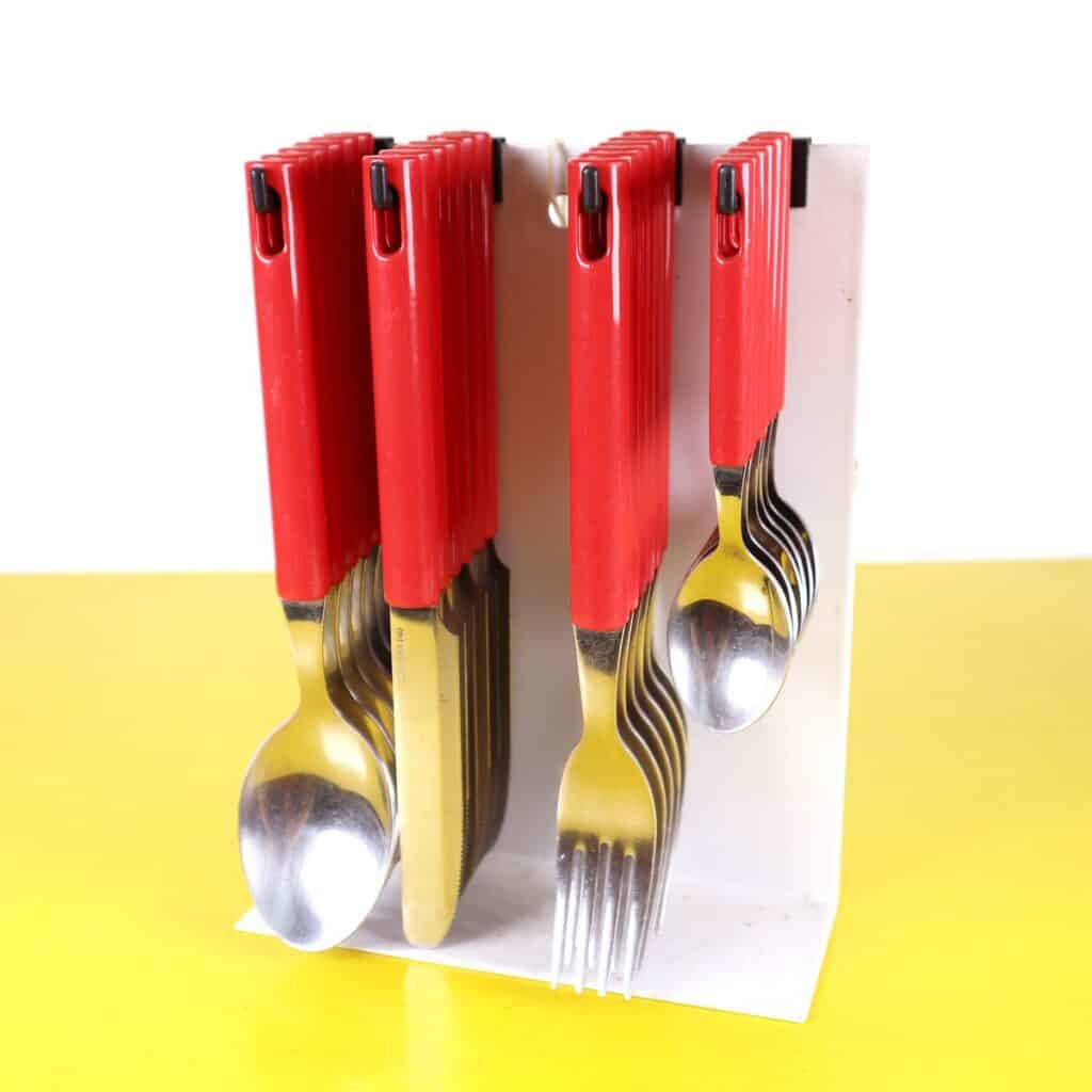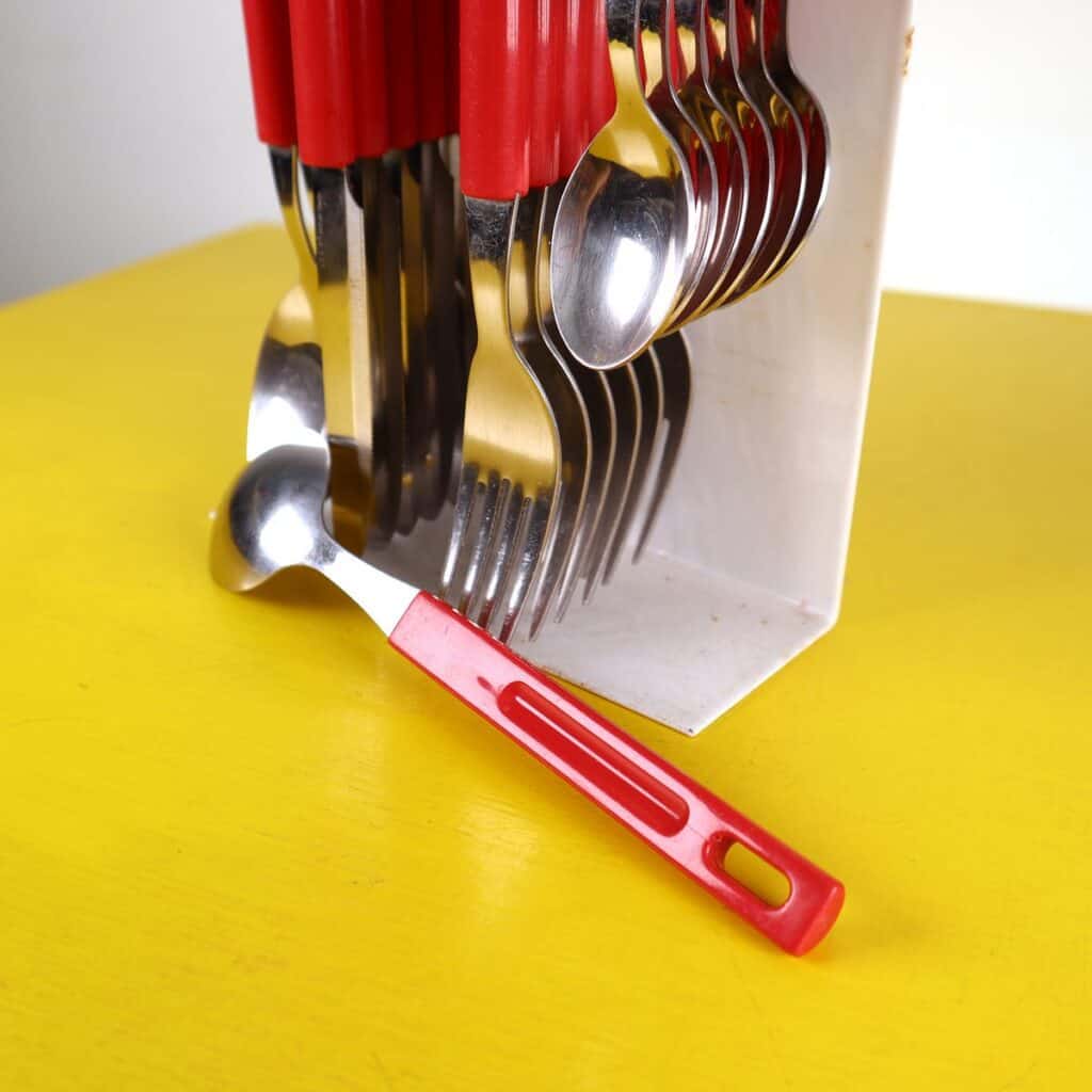 posate vintage anni 70 con supporto in metallo