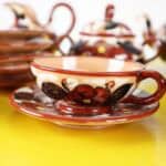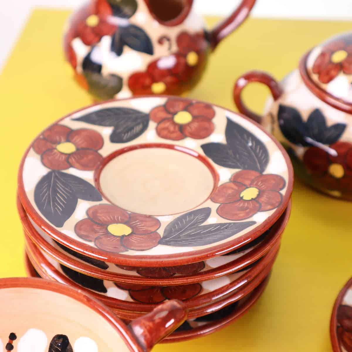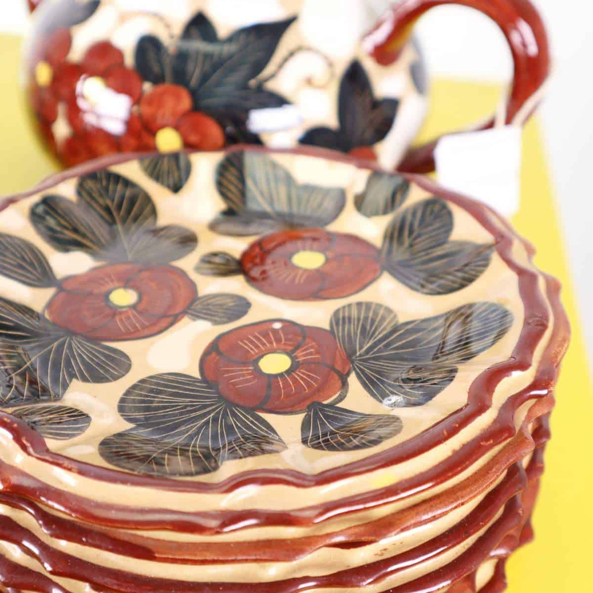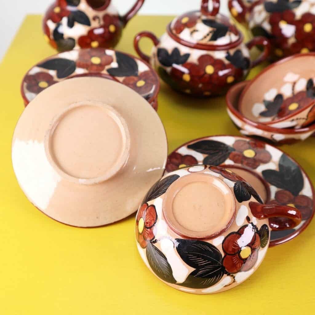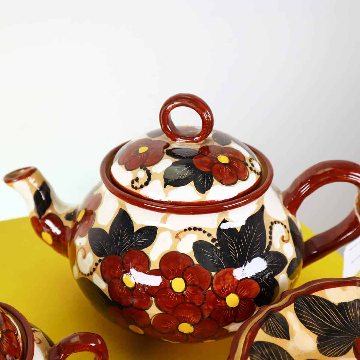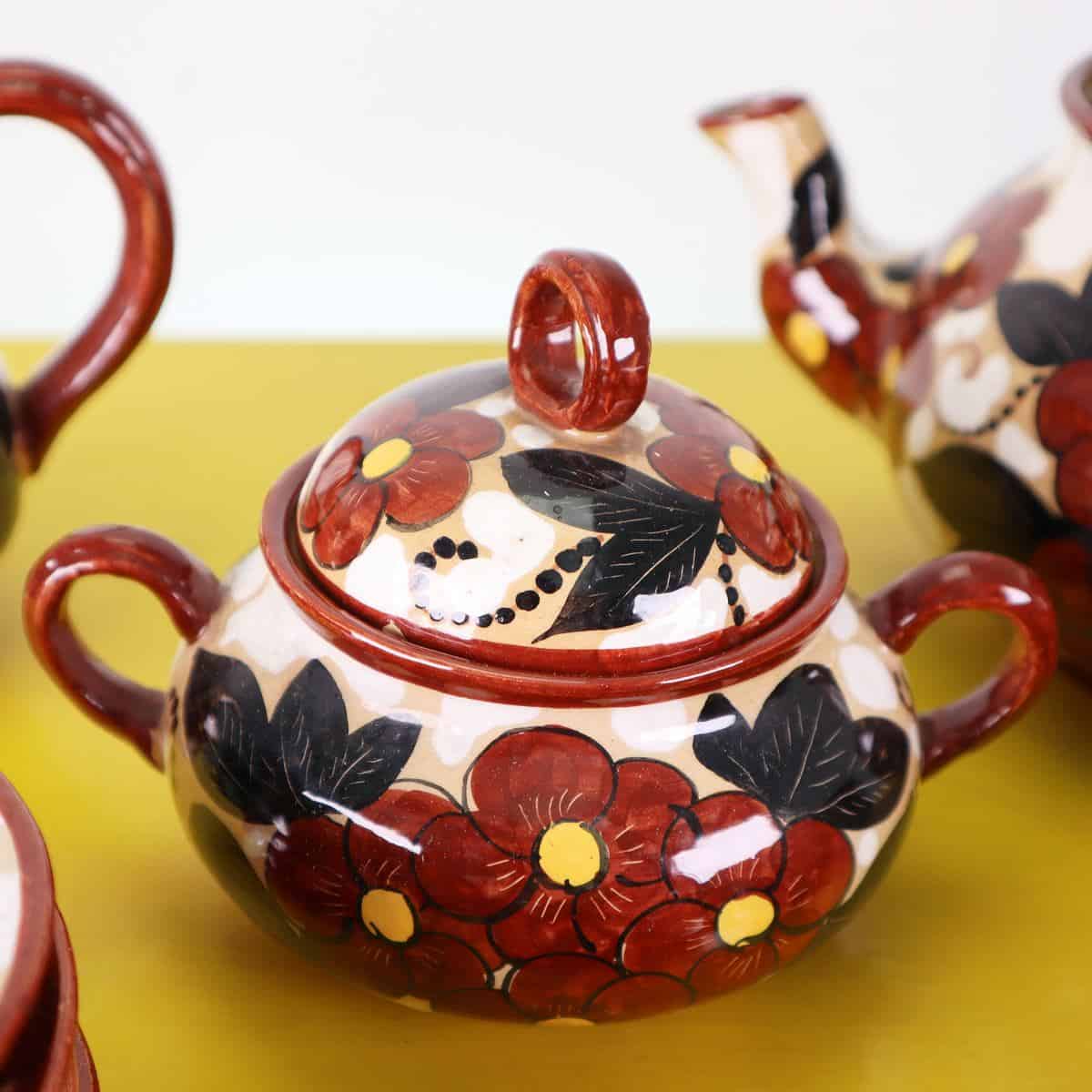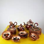 - le misure si riferiscono alla teiera - il servizio comprende teiera, zuccheriera, lattiera, 6 tazzine,6 piattini e 6 piatti dolce. - presenta imperfezioni visibili in foto.