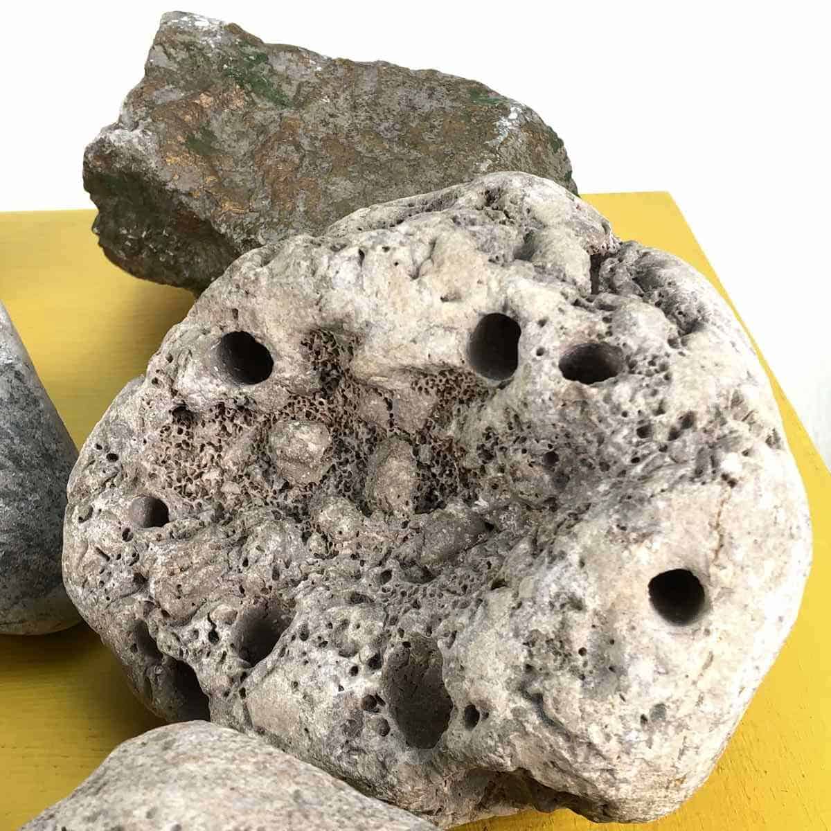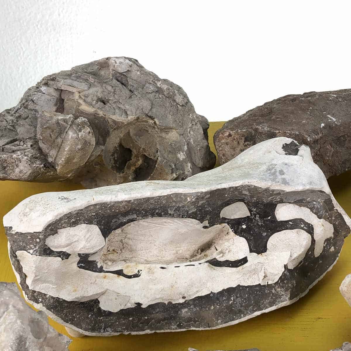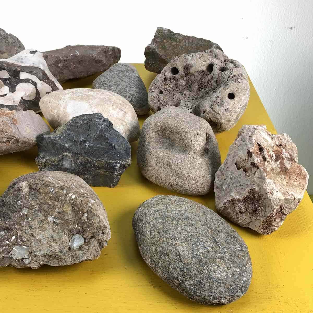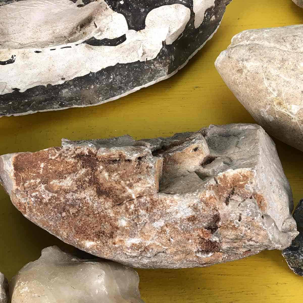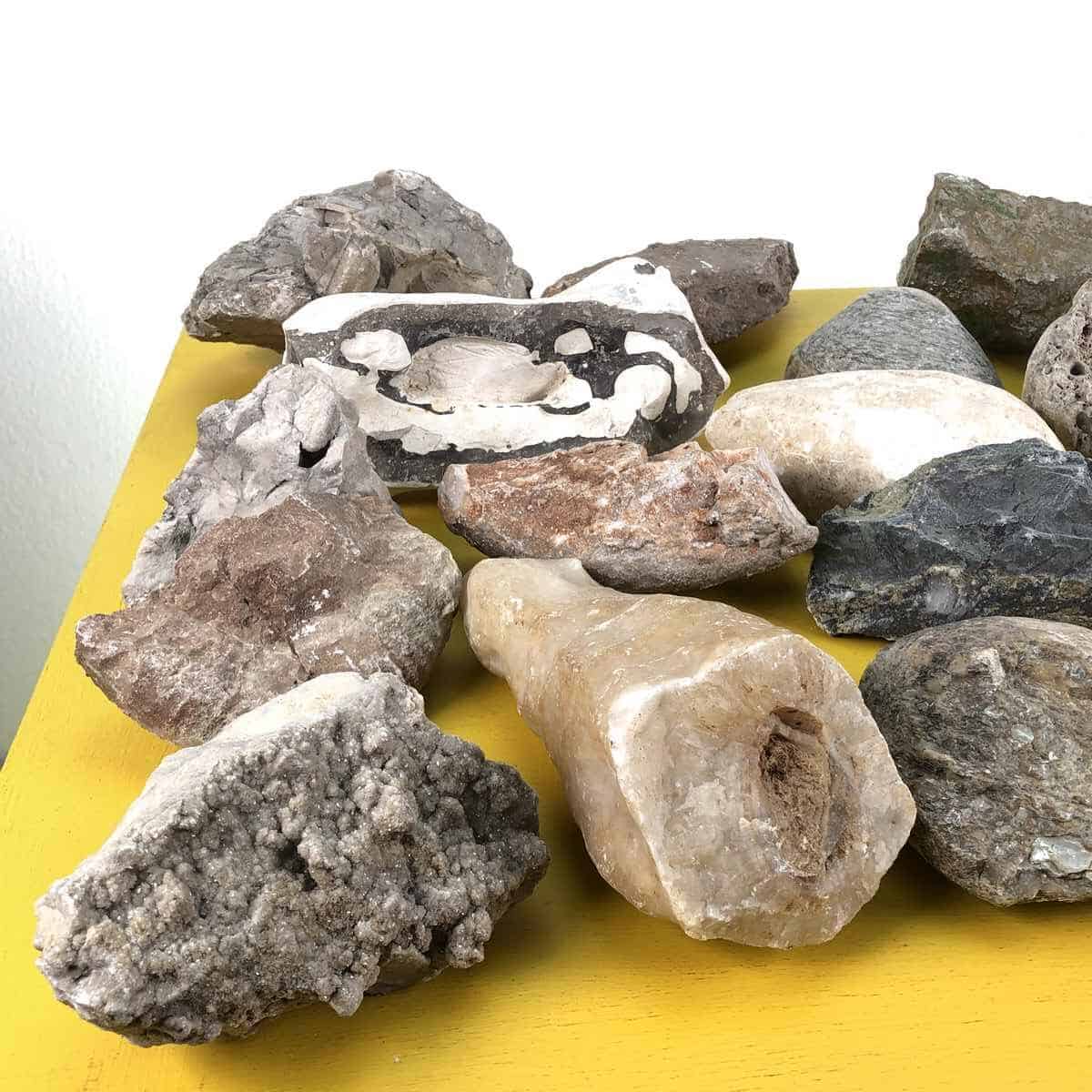 lotto di pietre fossili e minerali