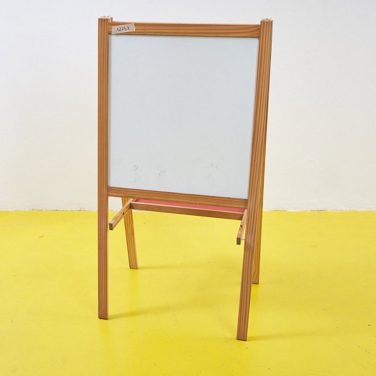 Questa affascinante lavagna vintage e' perfetta per ogni ambiente, da quello domestico a quello professionale. Realizzata in legno di alta qualita', presenta un elegante telaio in legno chia... Questa affascinante lavagna vintage e' perfetta per ogni ambiente, da quello domestico a quello professionale. Realizzata in legno di alta qualita', presenta un elegante telaio in legno chiaro che sostiene una superficie nera opaca, ideale per scrivere e disegnare. L'aggiunta di un pratico ripiano rosso sottostante offre spazio per gessetti o cancelleria, rendendola non solo decorativa ma anche funzionale. Questa lavagna e' un esempio di design semplice ed efficace, perfetta per ispirare la creativita' di grandi e piccini. Perfetta per scuole, sale giochi o come elemento decorativo in una casa moderna, questa lavagna rappresenta un pezzo di storia e un invito all'arte e alla comunicazione. Altro