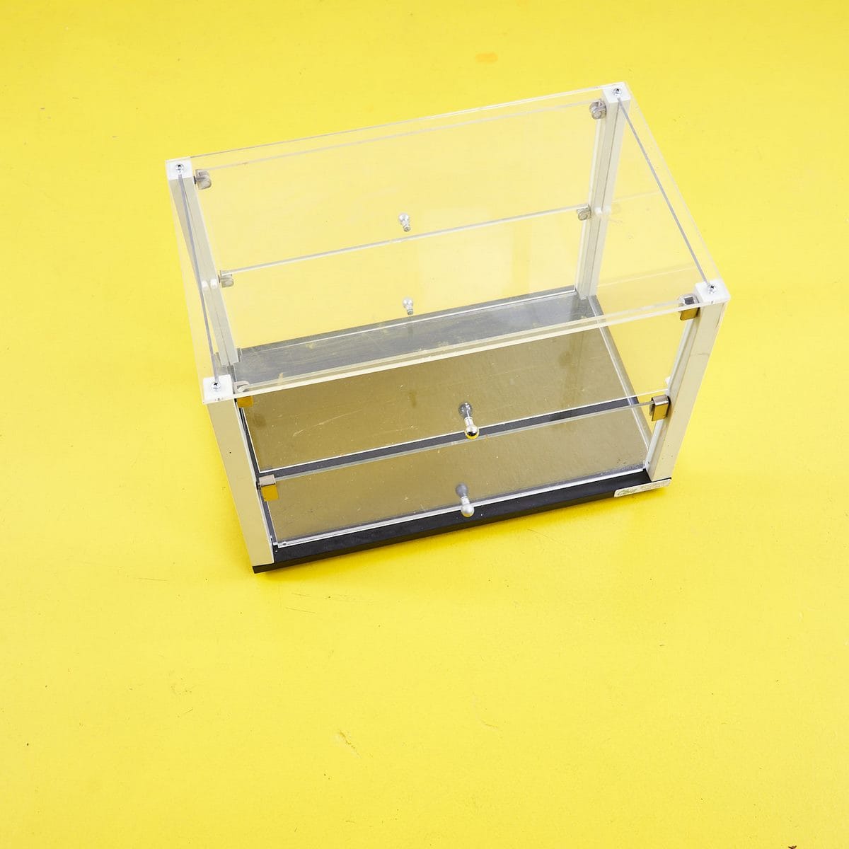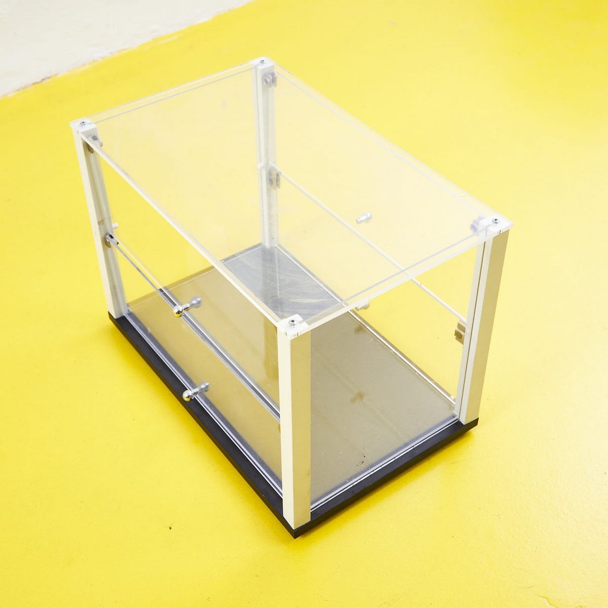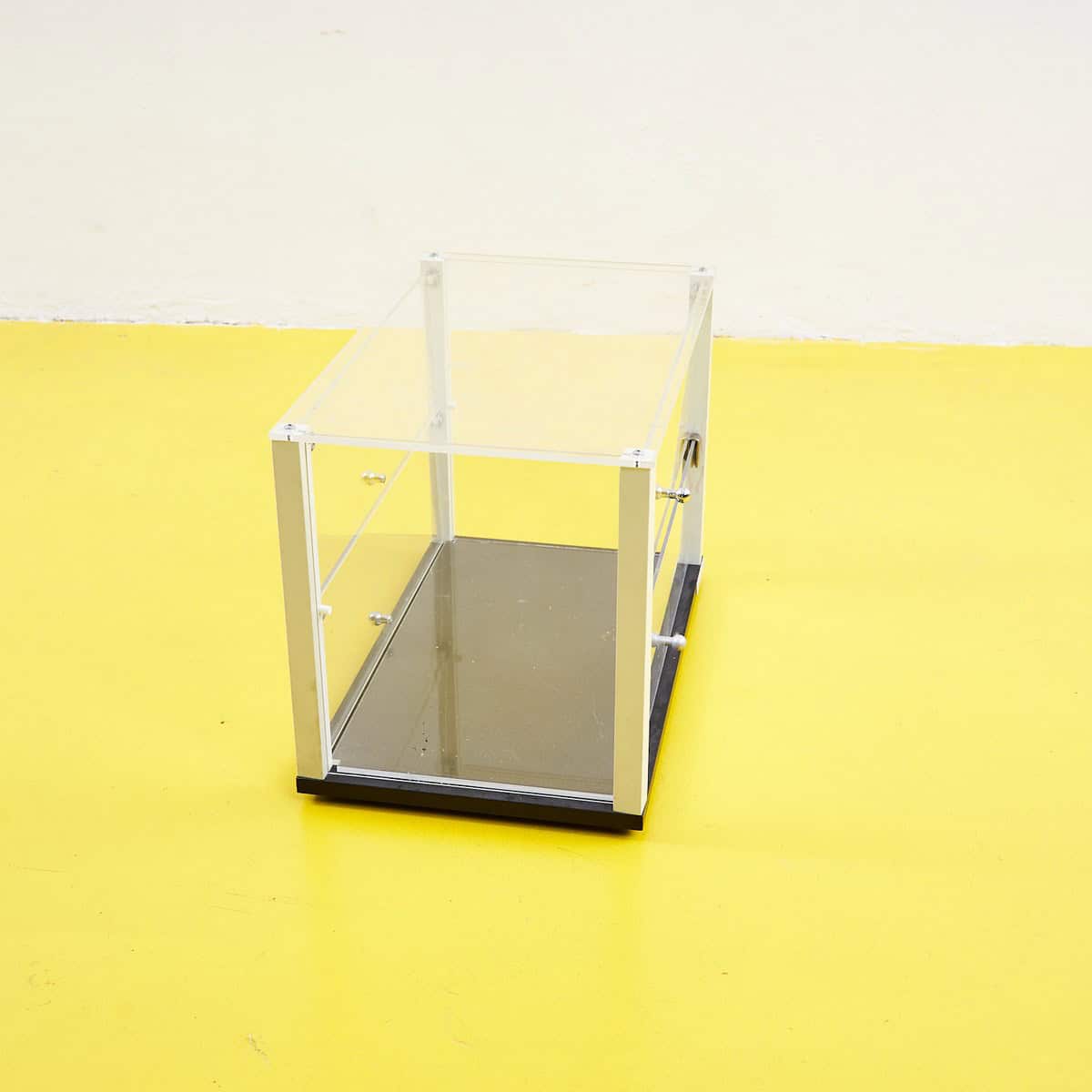 Questo affascinante box espositivo in acrilico trasparente e' un oggetto di design moderno, perfetto per valorizzare collezioni e oggetti di valore. Realizzato con materiali di alta qualita'... Questo affascinante box espositivo in acrilico trasparente e' un oggetto di design moderno, perfetto per valorizzare collezioni e oggetti di valore. Realizzato con materiali di alta qualita', presenta una struttura elegante con omaggi al design minimalista degli anni '80. Gli elementi in metallo conferiscono stabilita' e un tocco di raffinatezza, mentre i ripiani regolabili offrono la versatilita' necessaria per ospitare qualsiasi tipo di collezione. In perfette condizioni, questo box espositivo non solo protegge i tuoi tesori ma li mette anche in mostra in modo accattivante. Ideale per gallerie, negozi di antiquariato o come elemento decorativo in una casa moderna. Altro