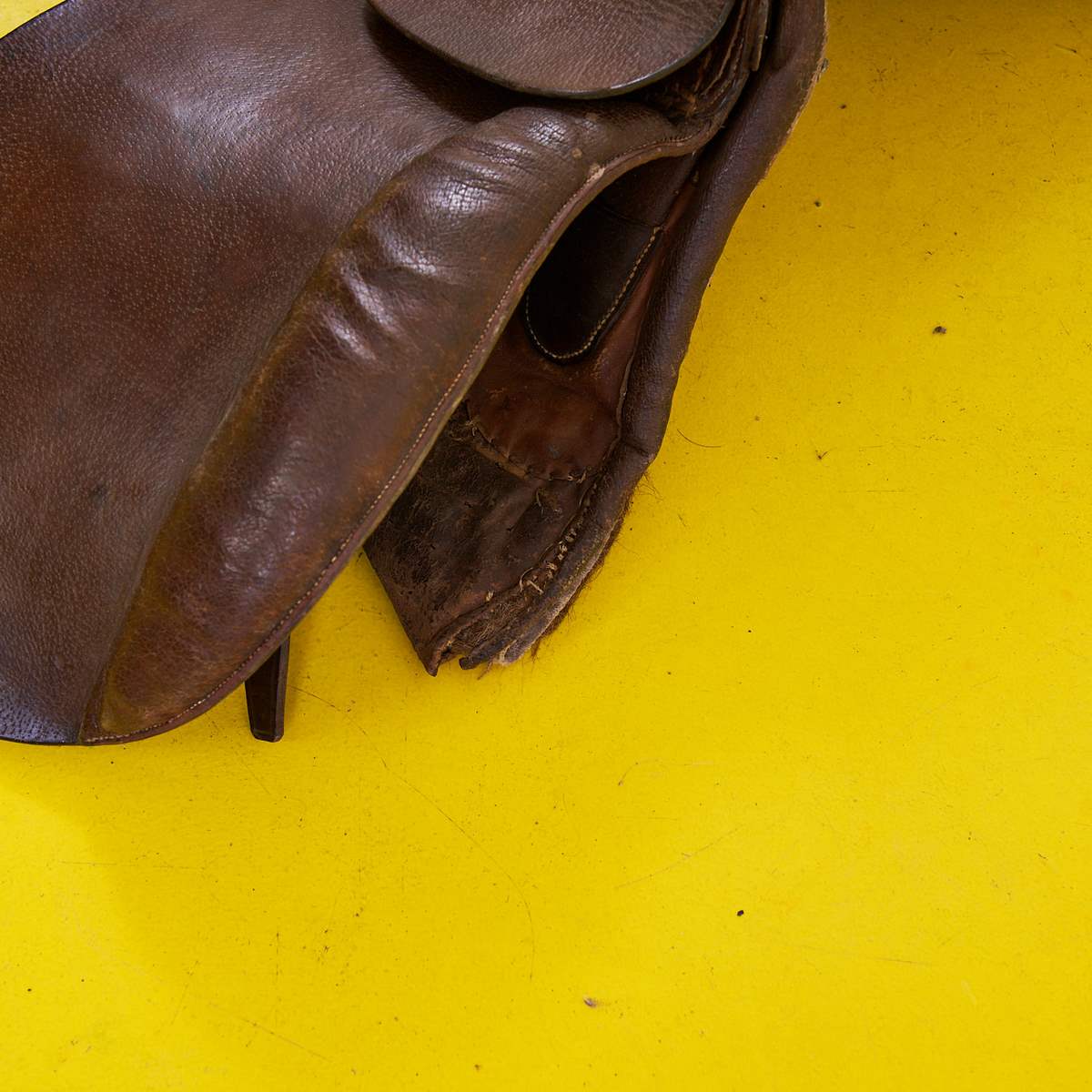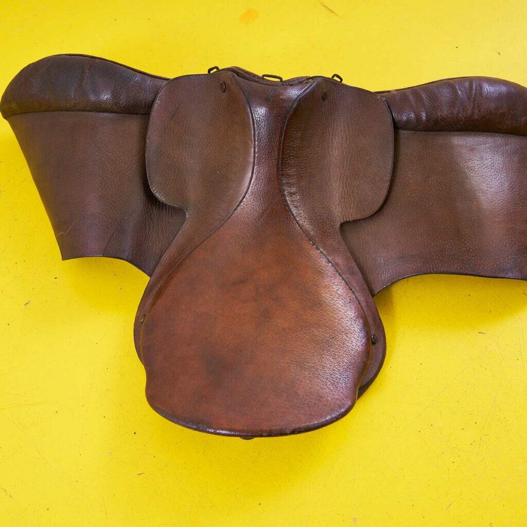 Questa sella d'epoca, realizzata in pelle pregiata, incarna l'eleganza e la tradizione artigianale. Caratterizzata da un design iconico, presenta una combinazione di tonalita' marrone c... Questa sella d'epoca, realizzata in pelle pregiata, incarna l'eleganza e la tradizione artigianale. Caratterizzata da un design iconico, presenta una combinazione di tonalita' marrone che evidenziano le venature naturali del materiale. L'oggetto risale a un periodo storico significativo, riflettendo lo stile classico delle selle utilizzate nei secoli passati. Nonostante i segni del tempo che testimoniano la sua autenticita', la sella e' in buone condizioni e pronta per essere esposta come pezzo di design o utilizzata in attivita' equestri. Perfetta per collezionisti o come elemento decorativo, questa sella rappresenta un affascinante connubio tra funzionalita' e bellezza estetica. Altro