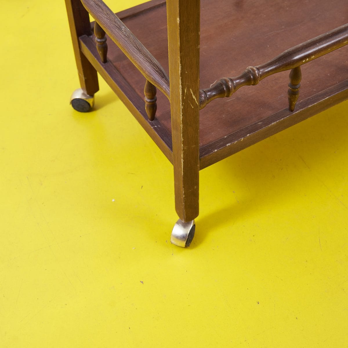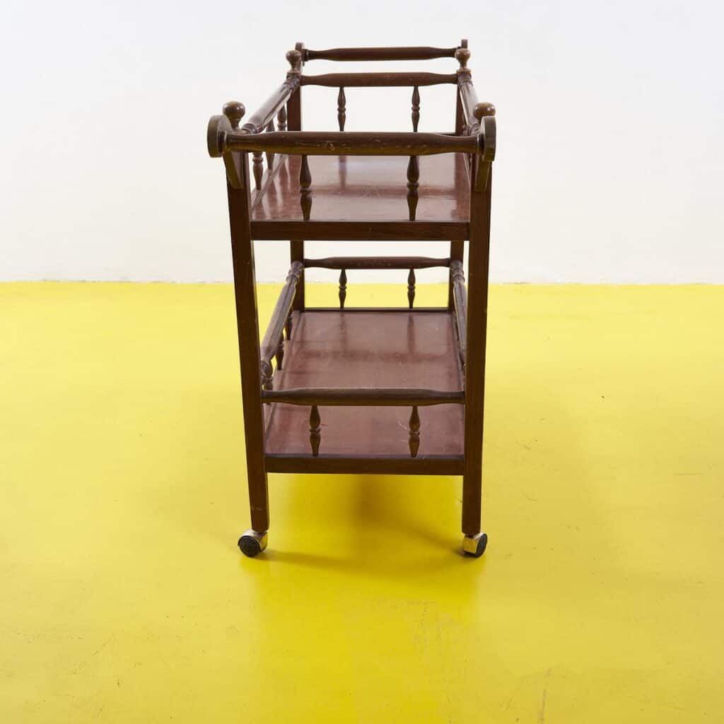 Questo affascinante carrello da servizio e' un perfetto esempio di design vintage, combinando eleganza e praticita'. Realizzato in legno massello, presenta due ripiani spaziosi ideali per se... Questo affascinante carrello da servizio e' un perfetto esempio di design vintage, combinando eleganza e praticita'. Realizzato in legno massello, presenta due ripiani spaziosi ideali per servire bevande o snack durante i tuoi eventi. Le maniglie curve e le gambe dotate di rotelle conferiscono un tocco di classe, rendendolo facile da spostare. La finitura calda del legno si integra in qualsiasi ambiente, dal rustico al moderno. Aggiungi un pezzo di storia alla tua casa con questo carrello che unisce estetica e funzionalita' in modo impeccabile. Altro