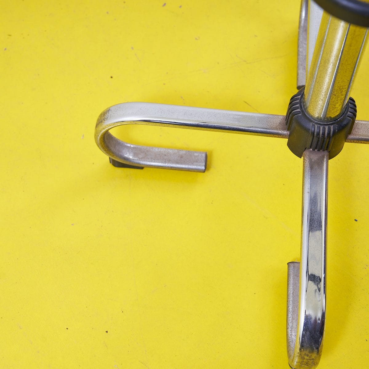 Esplora il fascino del design vintage con questo appendiabiti in metallo cromato, perfetto per aggiungere un tocco di eleganza a qualsiasi spazio. Realizzato negli anni '60, presenta una struttur... Esplora il fascino del design vintage con questo appendiabiti in metallo cromato, perfetto per aggiungere un tocco di eleganza a qualsiasi spazio. Realizzato negli anni '60, presenta una struttura robusta con una base stabile e un'asta alta che culmina in piu' ganci dalla forma distintiva e funzionali, ideali per giacche e cappotti. La finitura lucida in cromo non solo conferisce un aspetto moderno, ma e' anche facile da pulire, garantendo una manutenzione senza sforzo. Questo pezzo unico puo' essere utilizzato in corridoi, hall di hotel o studi, offrendo un mix di praticita' e stile senza tempo per gli amanti del design d'epoca. Altro