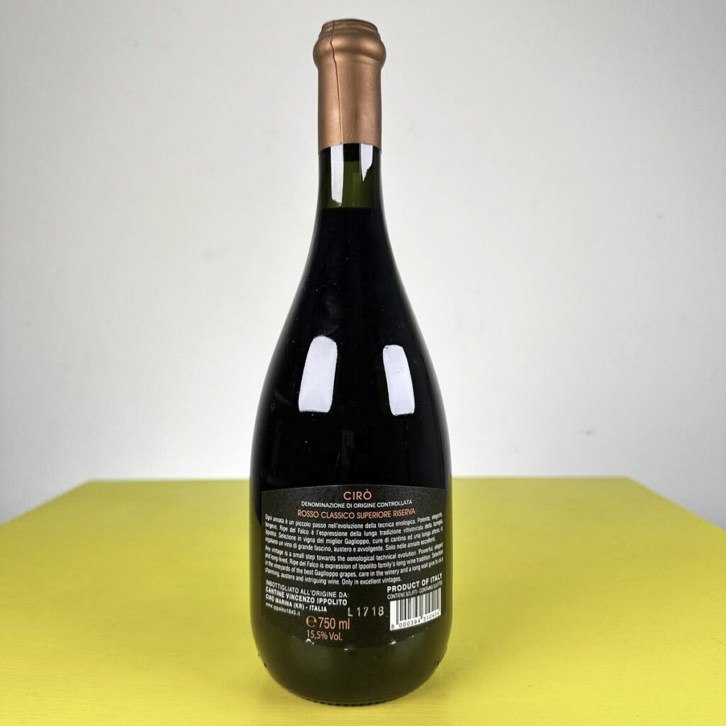 bottiglia vino ciro” riserva ripe del falco 2005