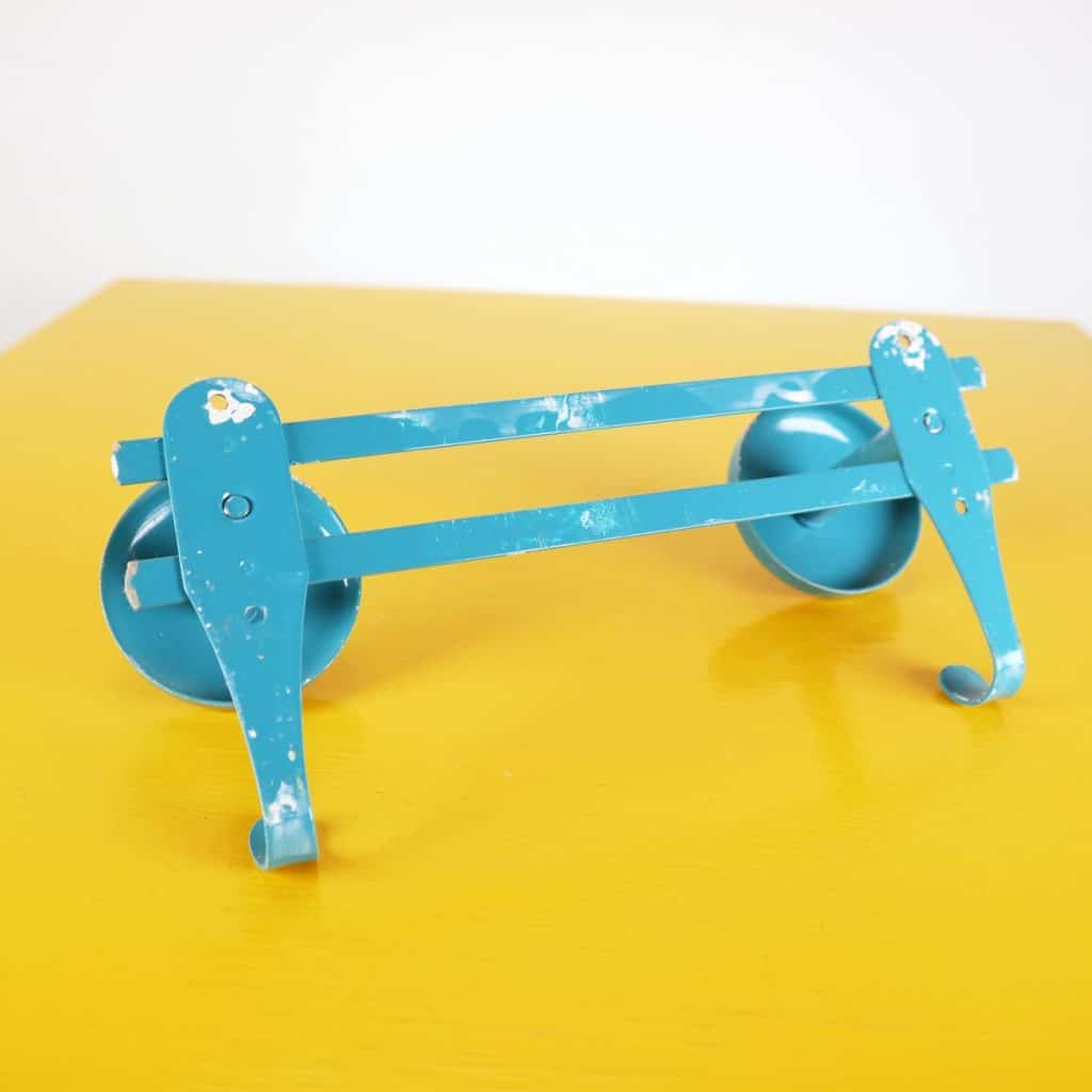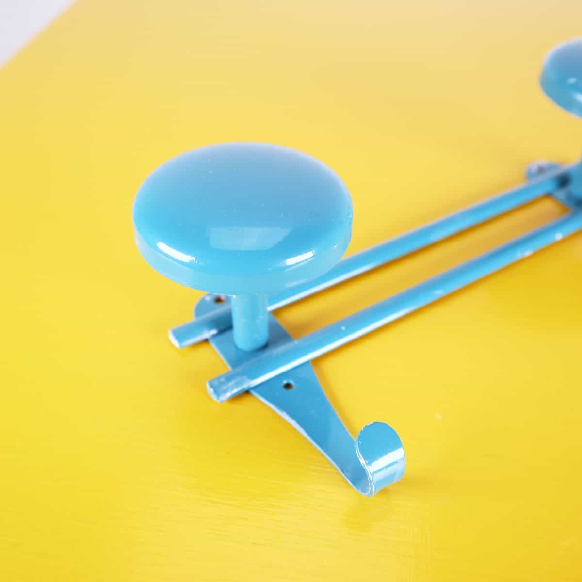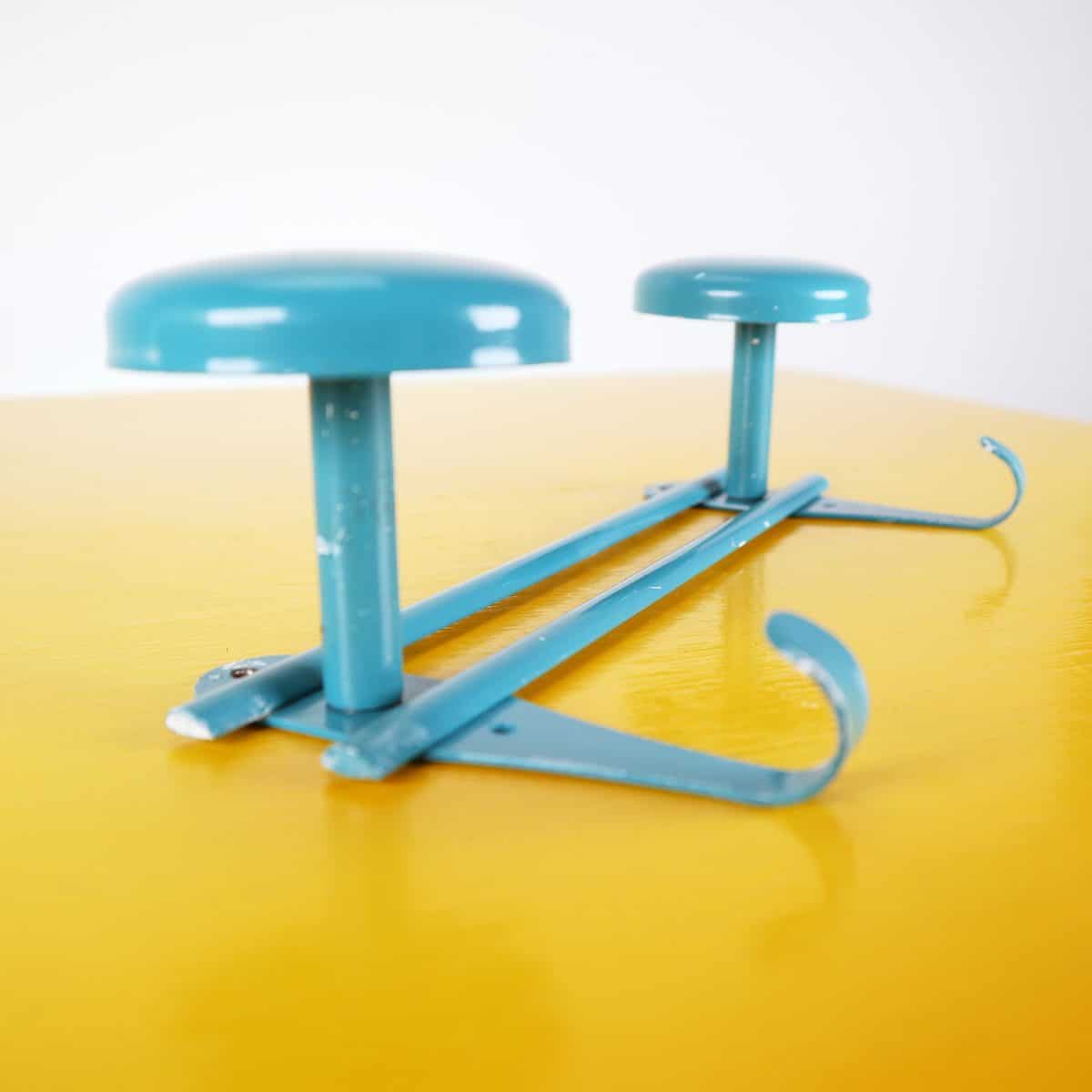 Questo affascinante attaccapanni in metallo presenta un design vintage distintivo, caratterizzato da una struttura solida e una finitura lucida che cattura la luce. Dotato di due pomoli rotondi e appe... Questo affascinante attaccapanni in metallo presenta un design vintage distintivo, caratterizzato da una struttura solida e una finitura lucida che cattura la luce. Dotato di due pomoli rotondi e appendini, è perfetto per aggiungere un tocco di stile alla tua entryway o al tuo spazio di lavoro. La sua tonalità azzurra vivace lo rende non solo funzionale, ma anche un pezzo decorativo che può valorizzare l"ambiente circostante. Realizzato con una particolare attenzione ai dettagli e all"estetica, questo attaccapanni è ideale per l"uso quotidiano, ma può anche diventare un elegante oggetto da collezione. àˆ in buone condizioni generali, con lievi segni del tempo che ne evidenziano la bellezza vissuta. Altro