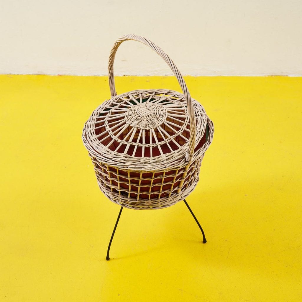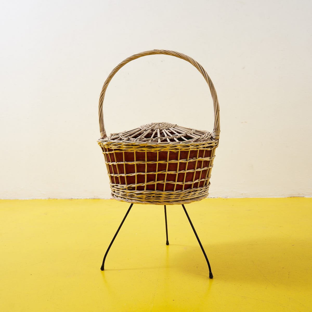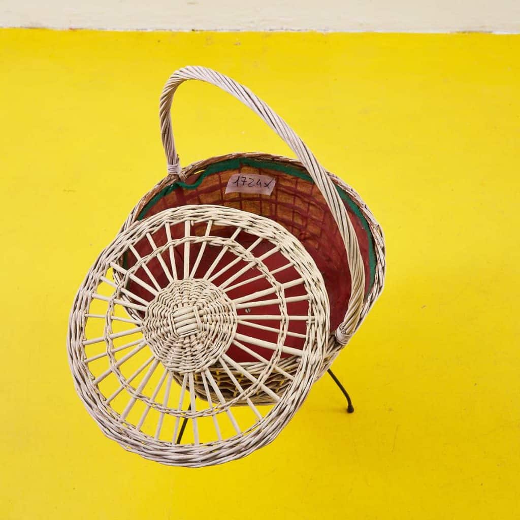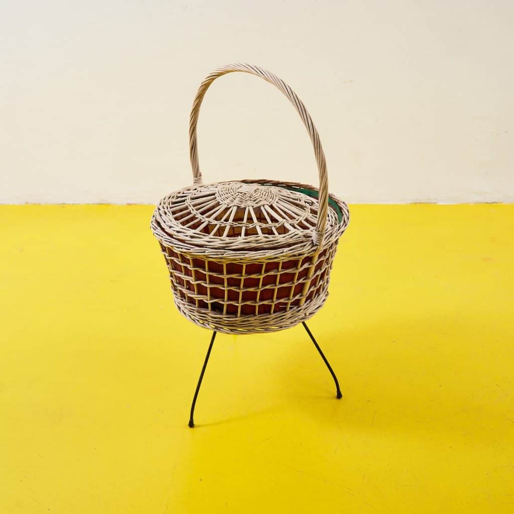 Cestino in vimini vintage con treppiedi