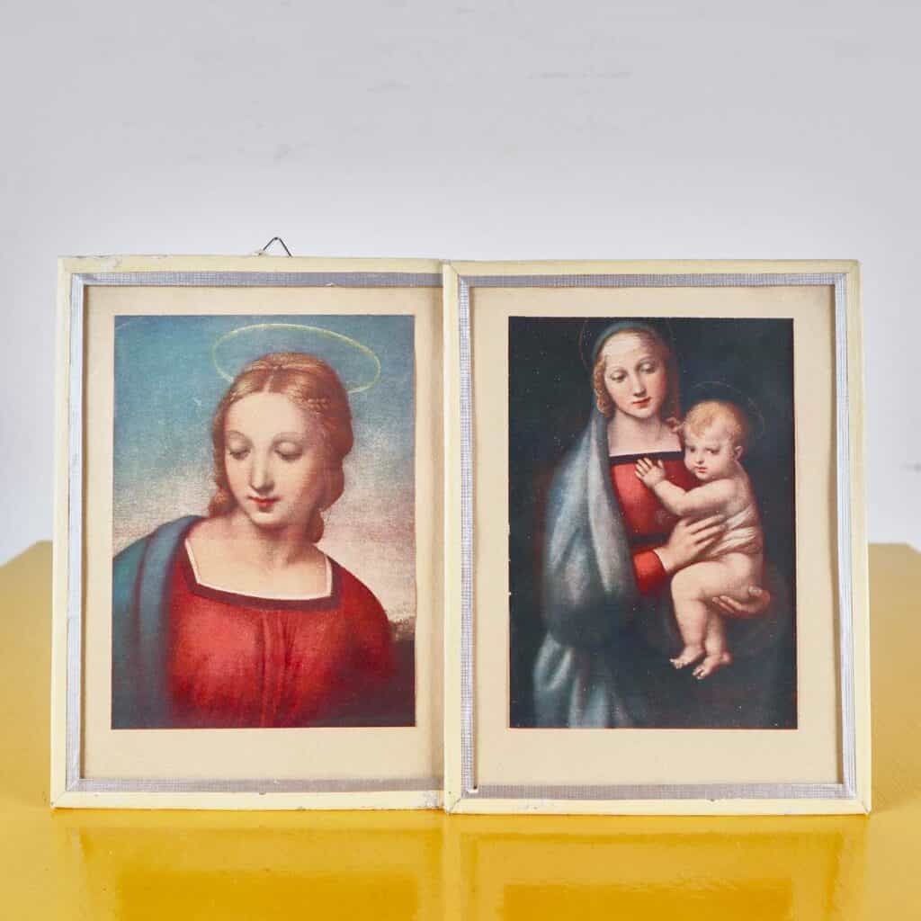 coppia di quadri vintage madonna con bambino