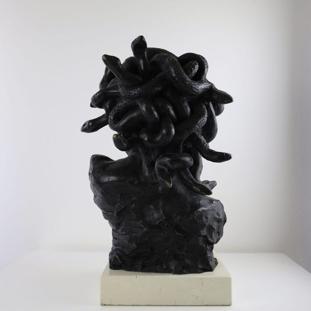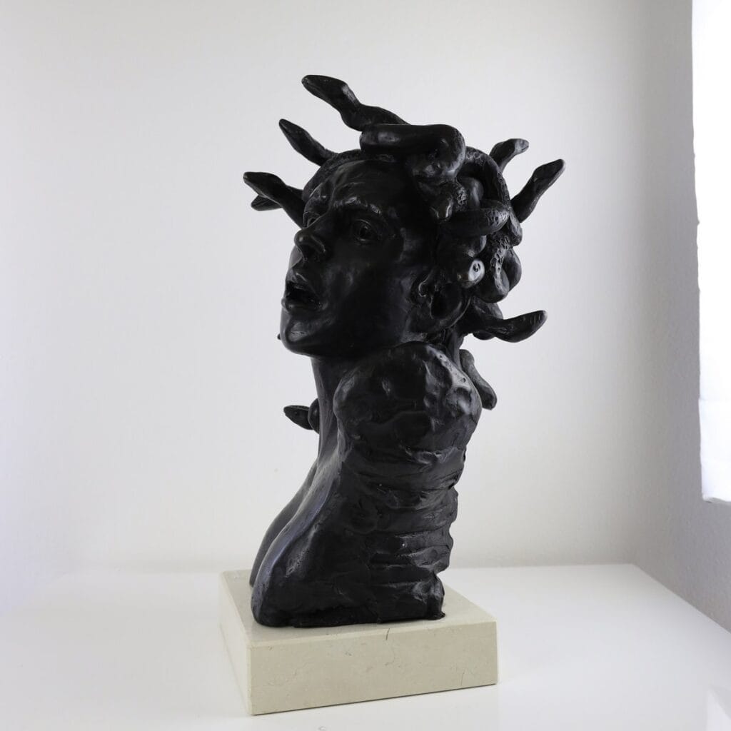 Scultura in bronzo a cera persa, del 900, TESTA DI Medusa