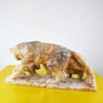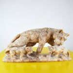 statua scultura in marmo felino con cuccioli