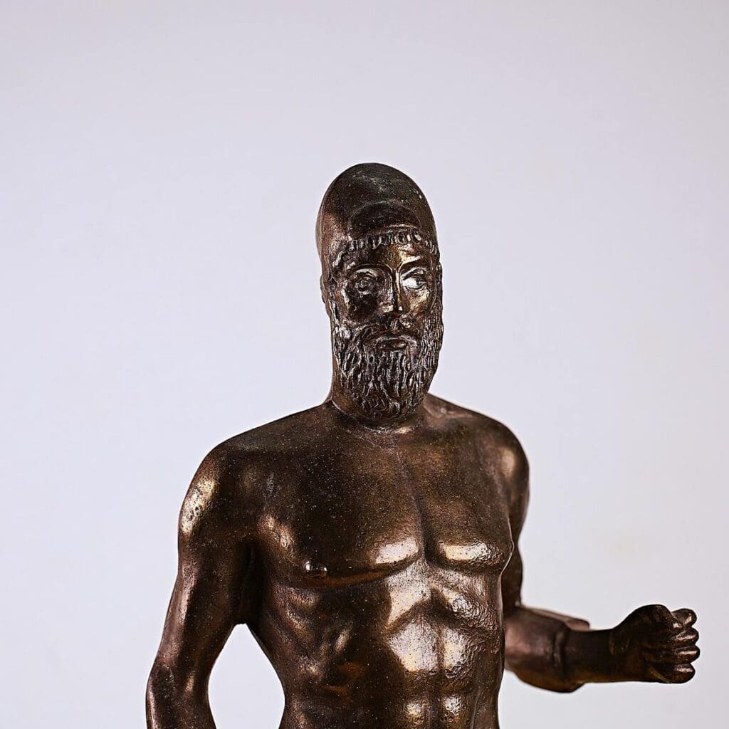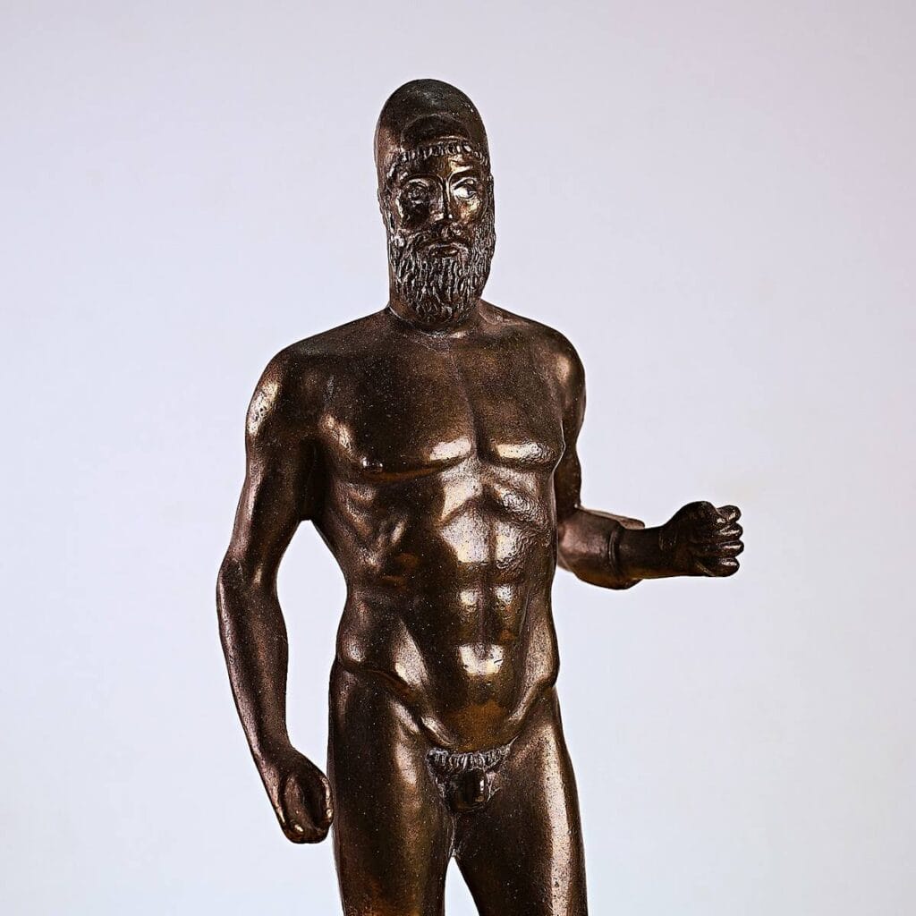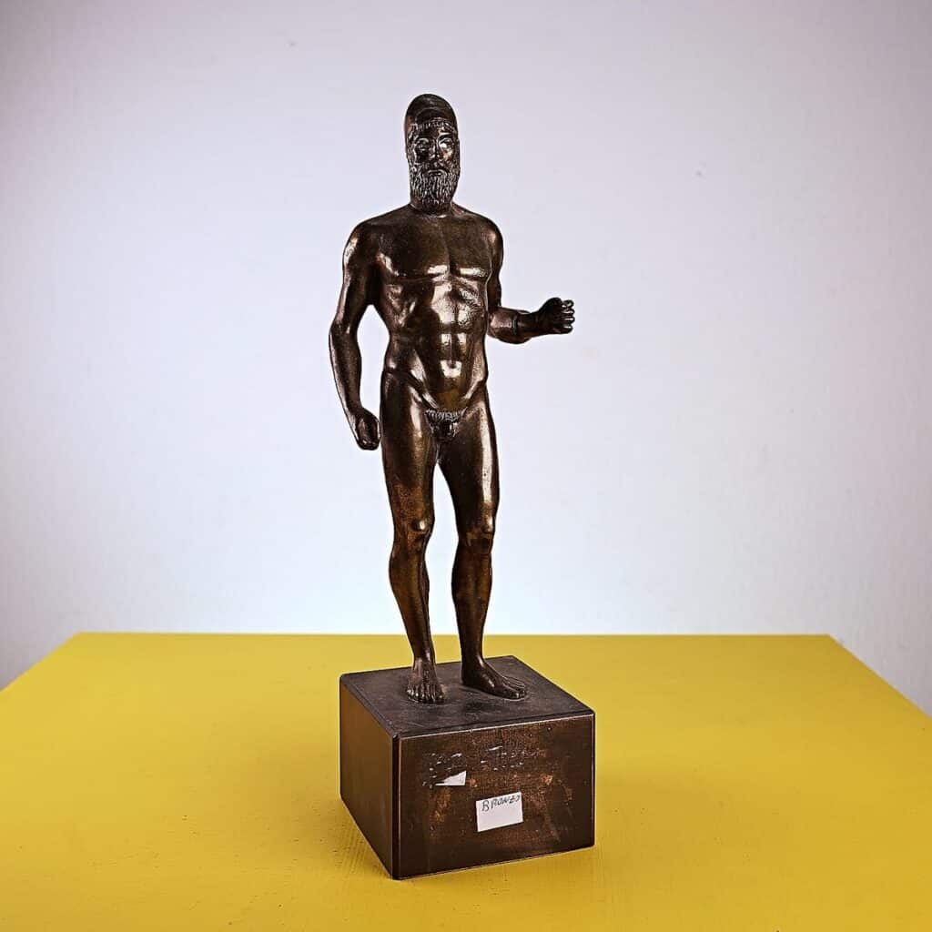 statua vintage in metallo, bronzo di riace