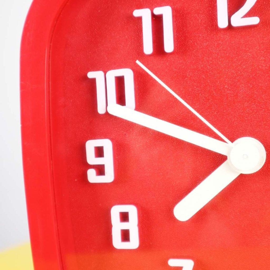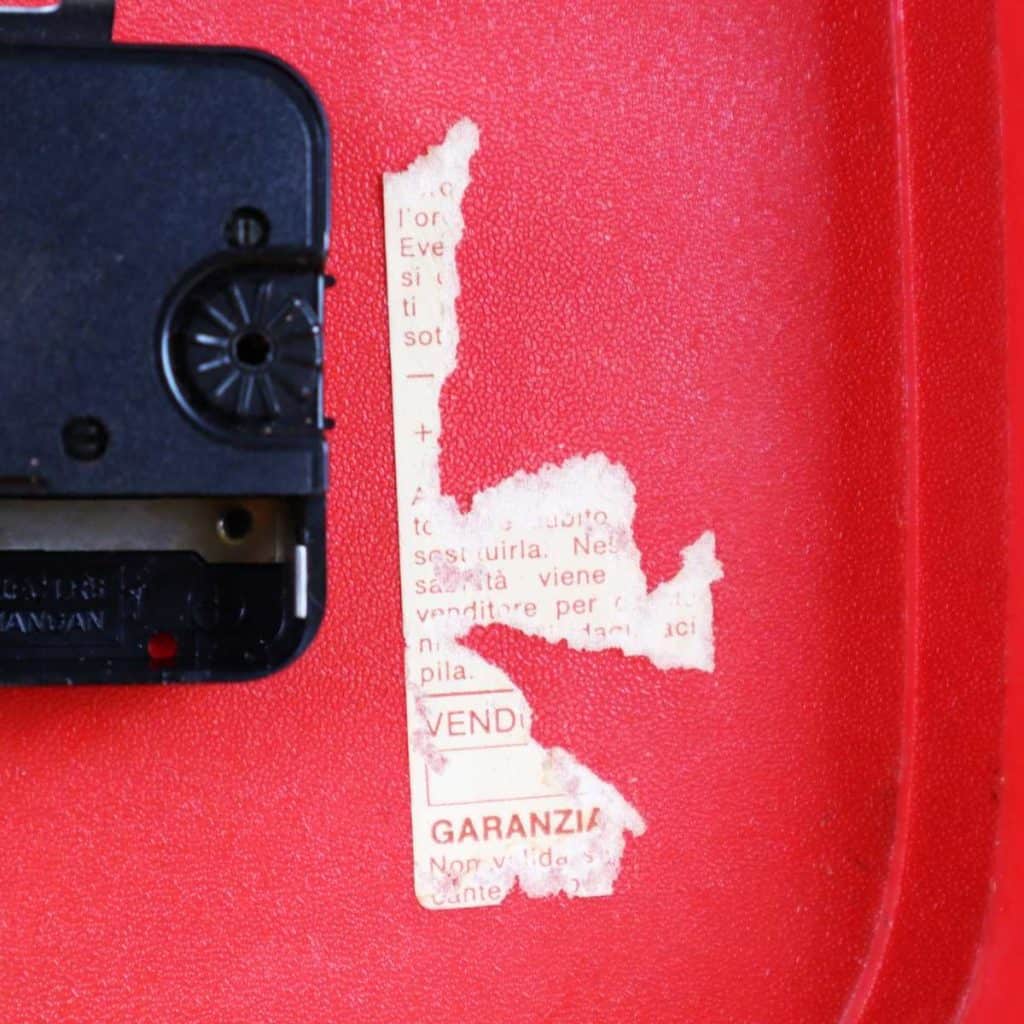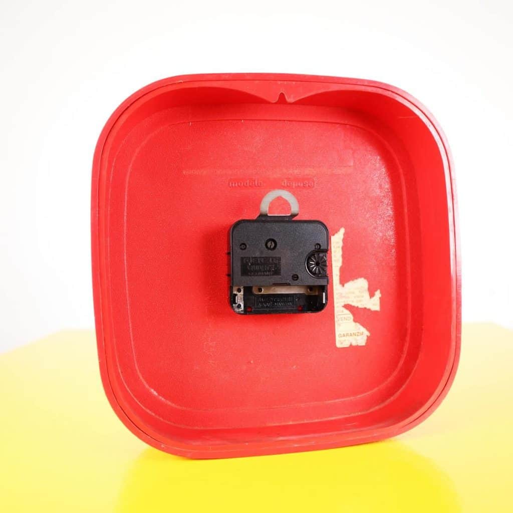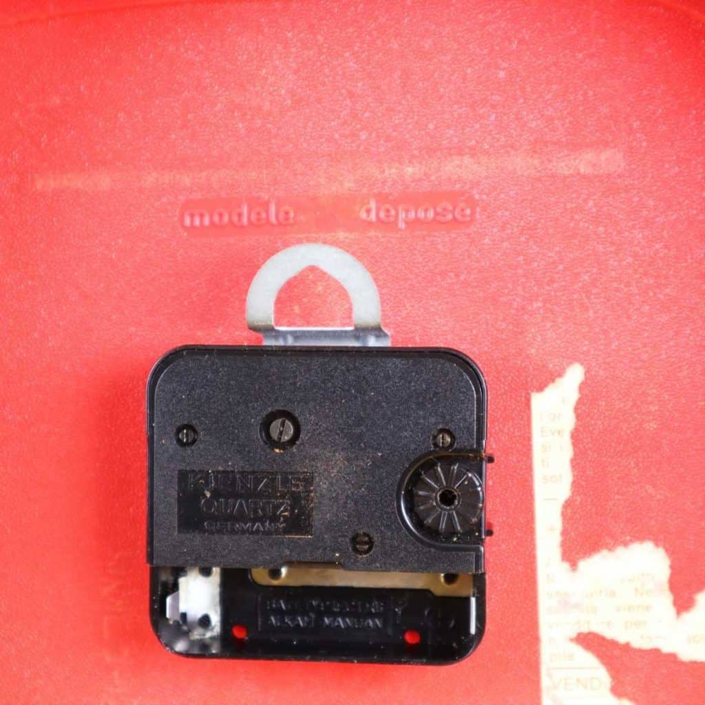 Questo affascinante orologio da tavolo in plastica rossa e' un perfetto esempio di design vintage degli anni '70. Caratterizzato da una forma quadrata con angoli arrotondati e numeri bianchi... Questo affascinante orologio da tavolo in plastica rossa e' un perfetto esempio di design vintage degli anni '70. Caratterizzato da una forma quadrata con angoli arrotondati e numeri bianchi ben visibili, e' ideale per aggiungere un tocco di colore e nostalgia a qualsiasi ambiente. La semplicita' del suo design lo rende adatto a diversi stili di arredamento, dal retro al moderno. In buone condizioni, l'orologio ha solo lievi segni di usura, testimoni delle sue storie passate. Funzionale e decorativo, e' perfetto per una scrivania, una libreria o come pezzo distintivo in un salotto. Altro