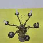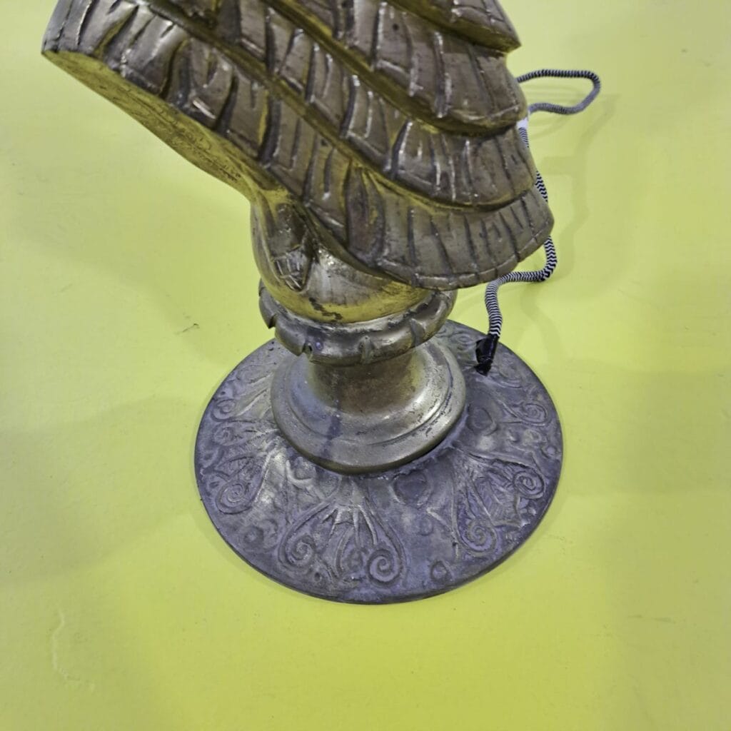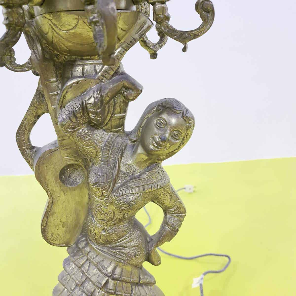 Questo affascinante candelabro dorato rappresenta un perfetto connubio tra eleganza e arte scultorea. Decorato con dettagli intricati, mette in risalto una figura femminile in abiti tradizionali che c... Questo affascinante candelabro dorato rappresenta un perfetto connubio tra eleganza e arte scultorea. Decorato con dettagli intricati, mette in risalto una figura femminile in abiti tradizionali che conferisce un tocco di sofisticatezza vintage. Ogni braccio del candelabro e' finemente lavorato e termina in una base destinata a reggere ceri o lampadine, facendo di questo oggetto non solo un pezzo decorativo ma anche funzionale. Ideale per chi cerca di arricchire il proprio ambiente con un tocco di storia e classe. Altro