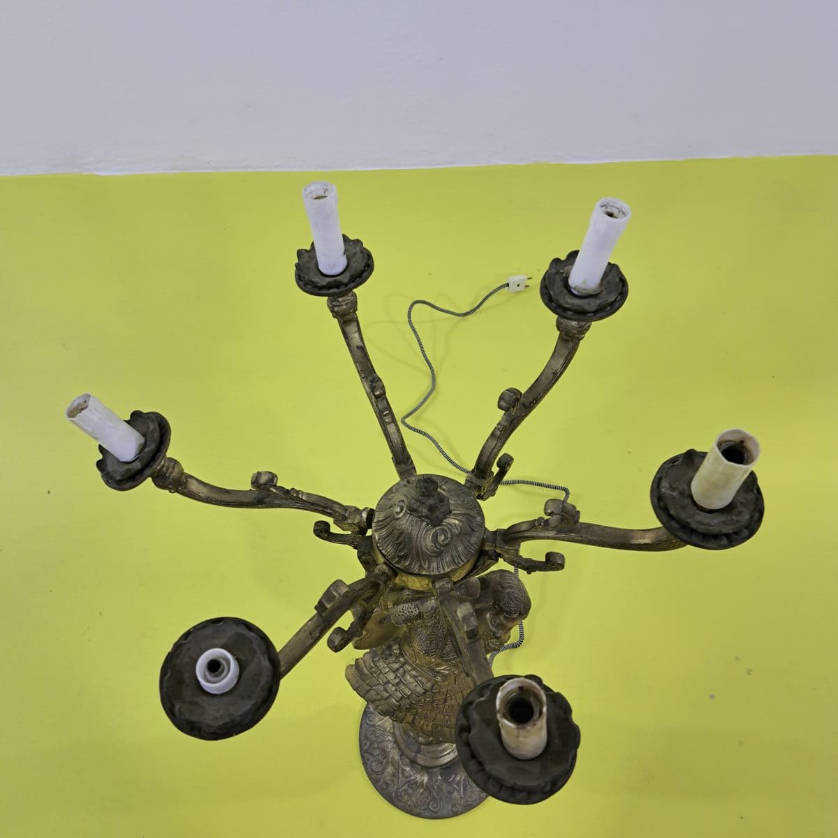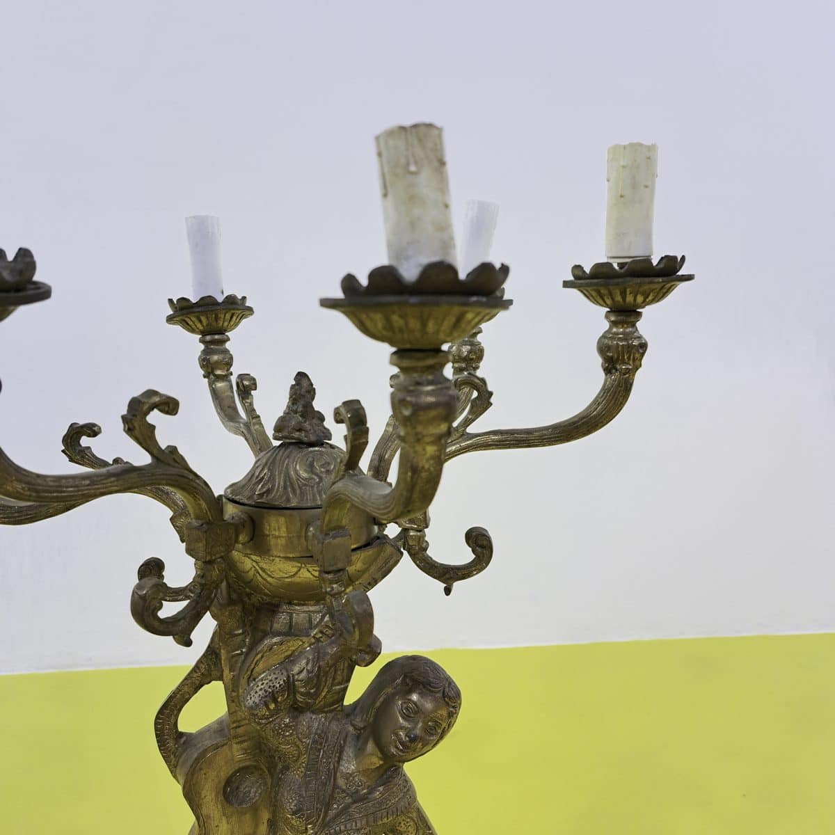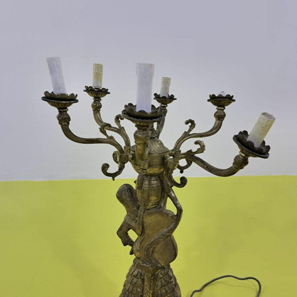 Candelabro Antico Dorato con Figura