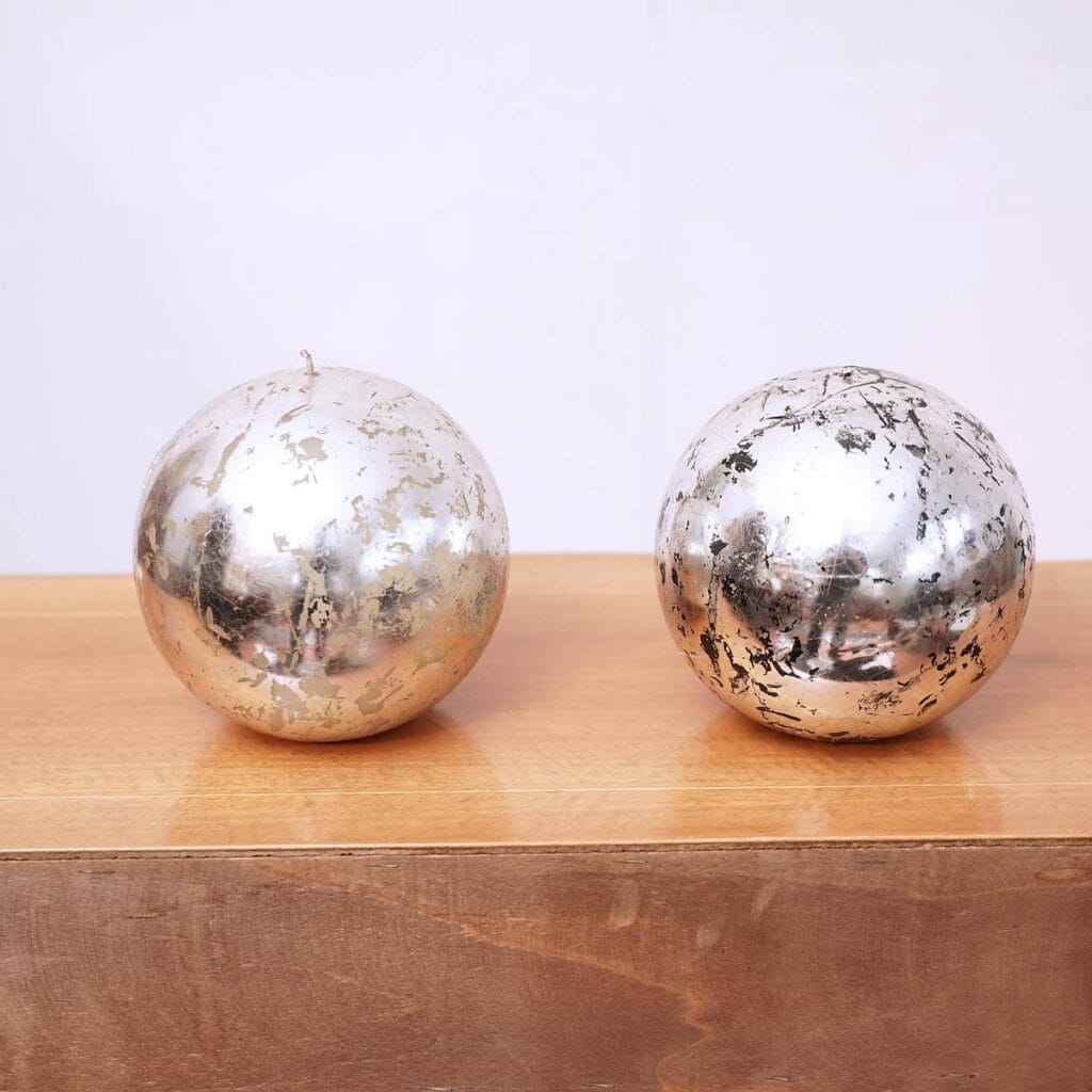 COPPIA DI CANDELE A SFERA, EFFETTO METAL