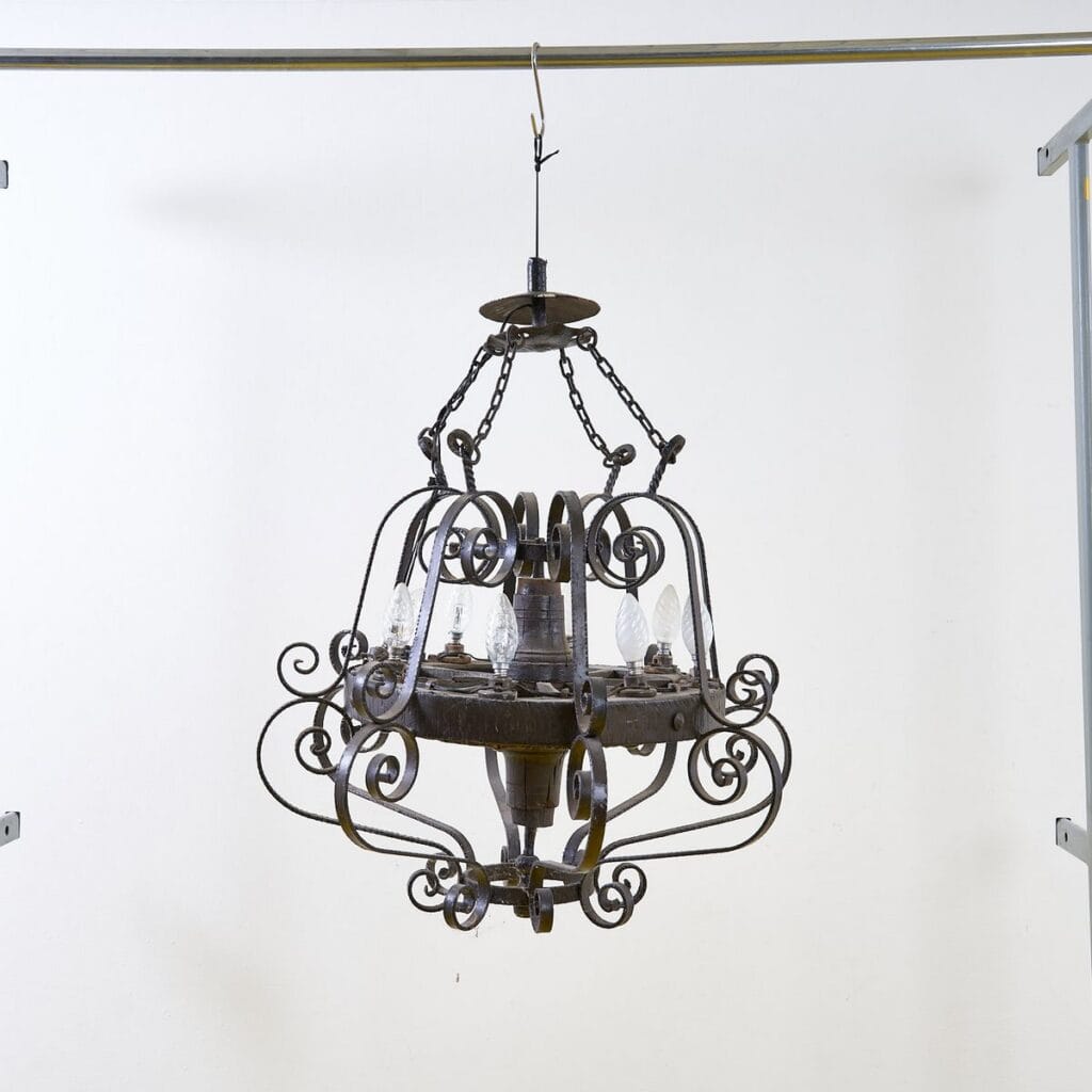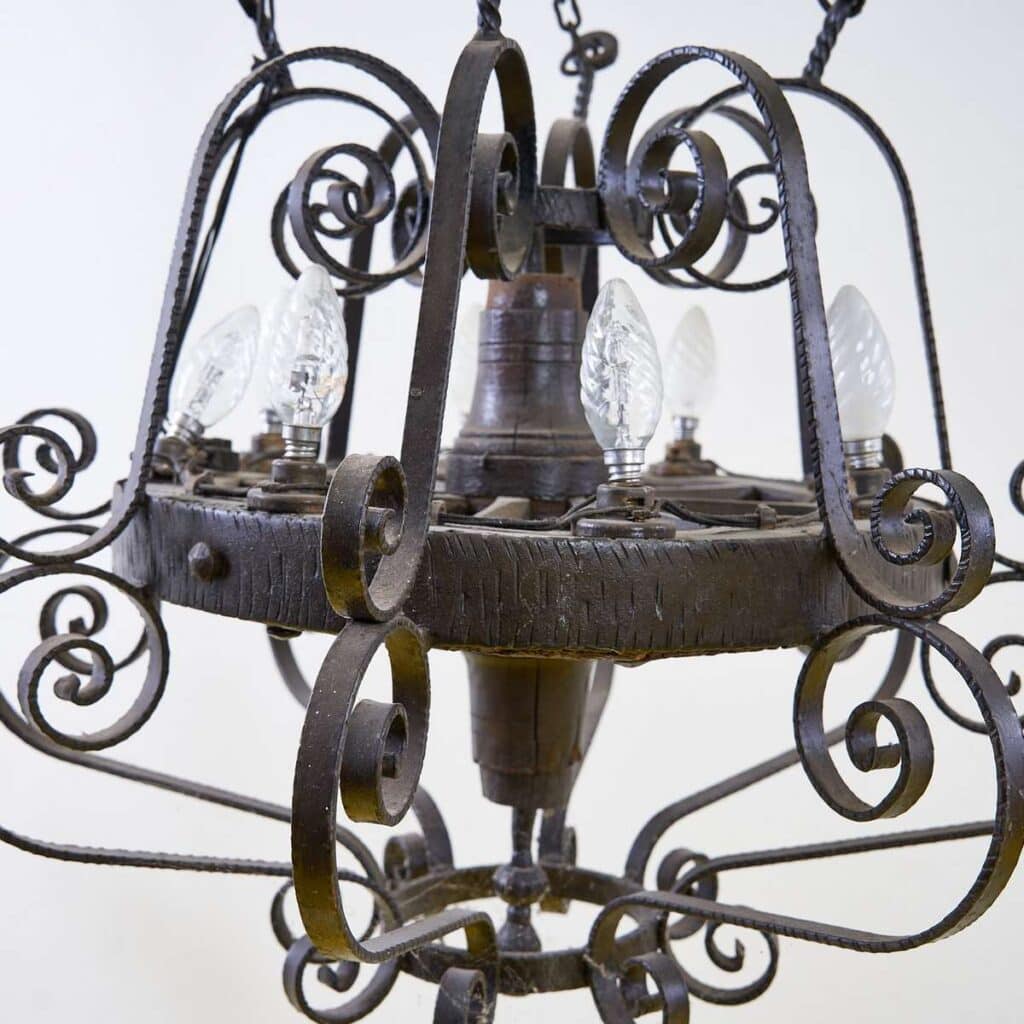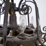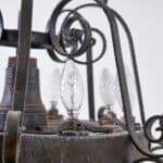 lampadario in legno vintage ricavato dalla ruota di un carro