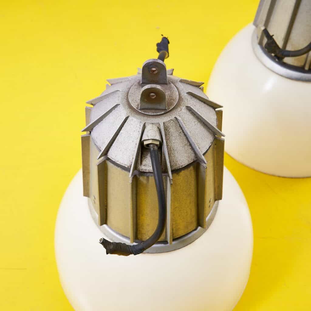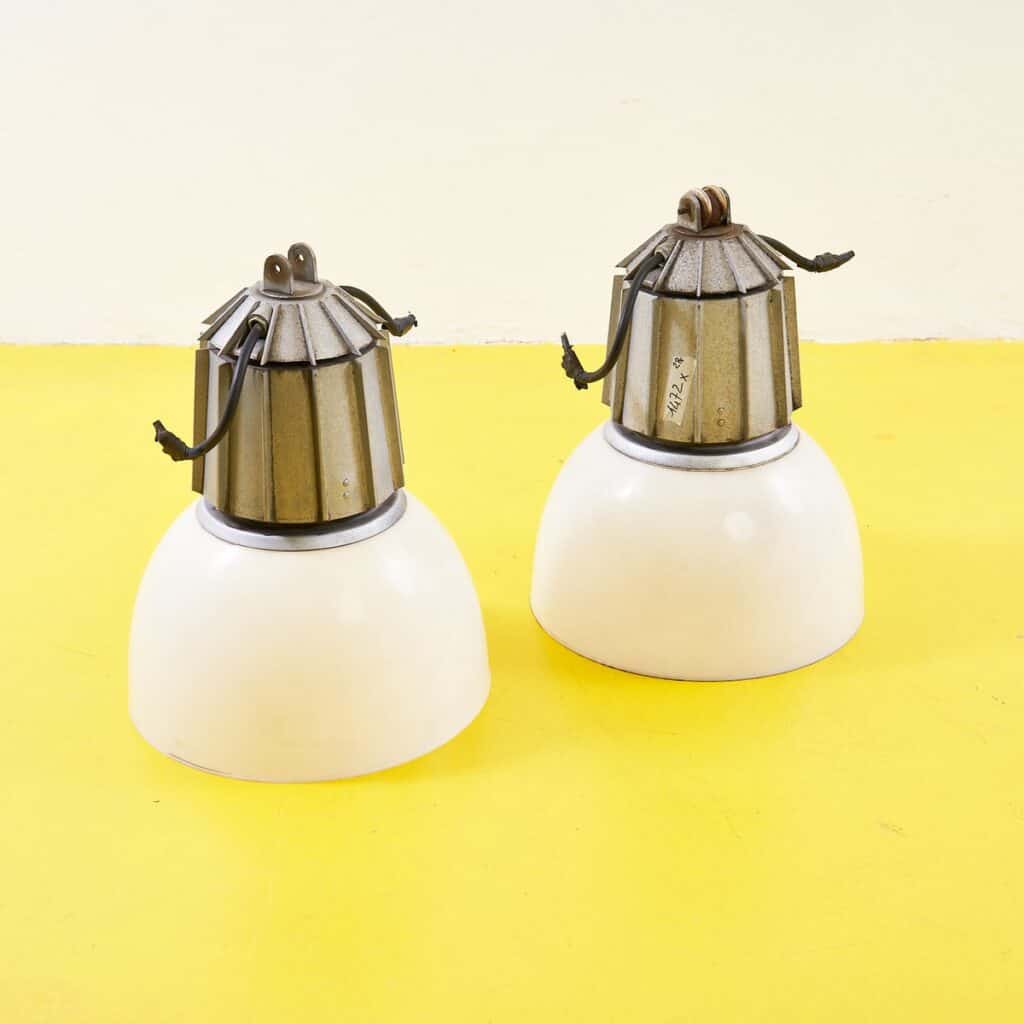 Rendi il tuo spazio unico con queste affascinanti lampade da soffitto in design vintage. Caratterizzate da una base cilindrica in metallo marrone e una diffusore in vetro bianco opaco, queste lampade ... Rendi il tuo spazio unico con queste affascinanti lampade da soffitto in design vintage. Caratterizzate da una base cilindrica in metallo marrone e una diffusore in vetro bianco opaco, queste lampade non solo illuminano, ma aggiungono anche un tocco di eleganza retro a qualsiasi ambiente. Ideali per stanze moderne o classiche, si integrano perfettamente in una varieta' di stili decorativi. Perfette per ristoranti, caffe' o per la tua casa, queste lampade sono un complemento versatile e senza tempo. Altro