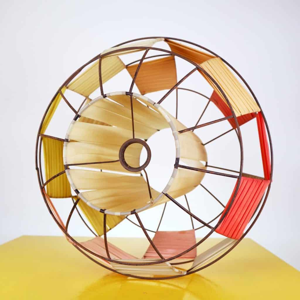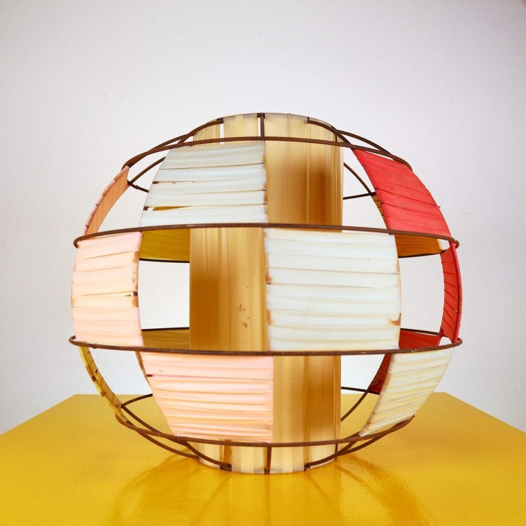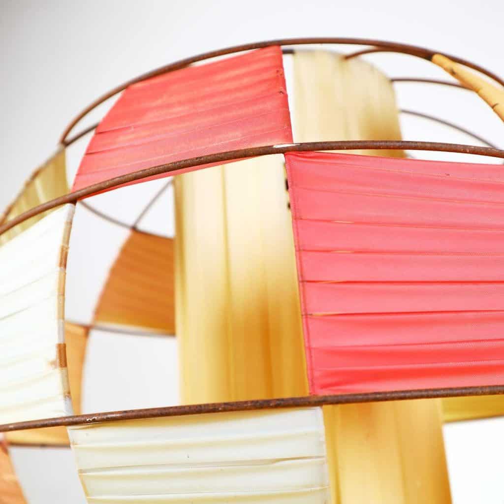 Questo affascinante paralume per lampadario degli anni '70 ricorda l'estetica vibrante di quel periodo. Realizzato con una struttura in metallo che offre un supporto robusto, l'oggetto ... Questo affascinante paralume per lampadario degli anni '70 ricorda l'estetica vibrante di quel periodo. Realizzato con una struttura in metallo che offre un supporto robusto, l'oggetto presenta pannelli in plastica di colori pastello che creano un gioco di luci unico. I colori rosso, giallo e crema si intrecciano armoniosamente, rendendo questo paralume un pezzo d'arredo perfetto per aggiungere un tocco retro a qualsiasi ambiente. In ottime condizioni, potrebbe essere utilizzato in salotti, studi o spazi commerciali alla ricerca di un design originale e nostalgico. L'oggetto e' un vero e proprio richiamo allo stile vintage e si distingue per la sua versatilita'. Altro