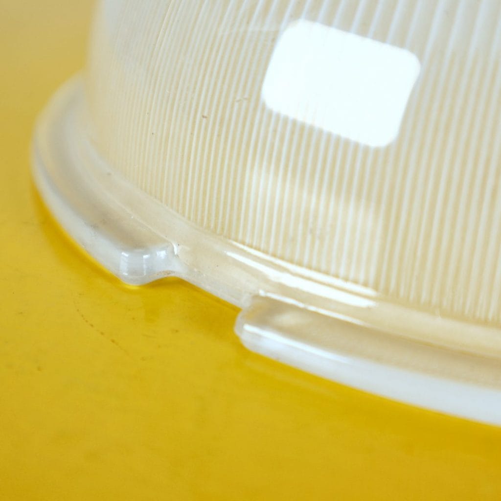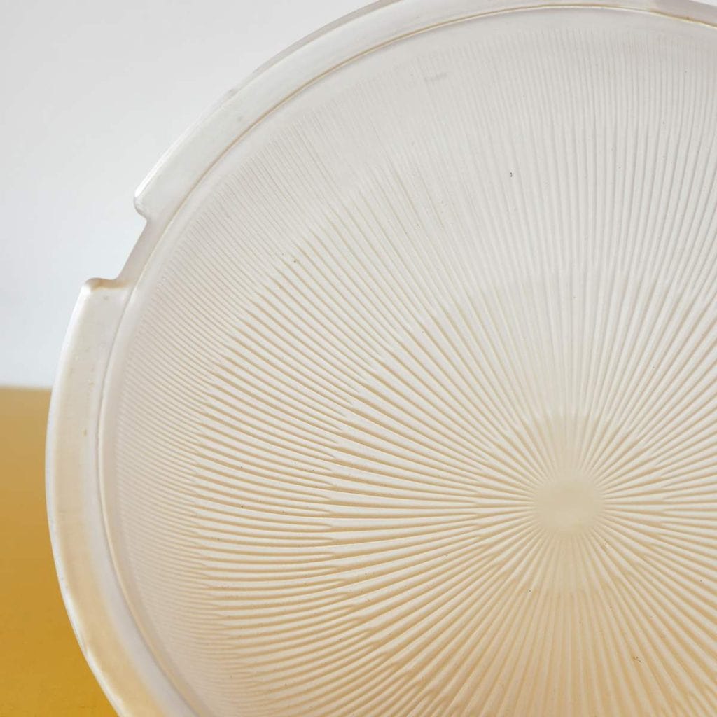 Questa plafoniera in vetro, caratterizzata da un design distintivo e affascinante, rappresenta un perfetto esempio di illuminazione vintage degli anni '60. Il suo corpo trasparente e' decora... Questa plafoniera in vetro, caratterizzata da un design distintivo e affascinante, rappresenta un perfetto esempio di illuminazione vintage degli anni '60. Il suo corpo trasparente e' decorato con eleganti righe verticali, che creano un effetto luminoso unico quando e' accesa. Realizzata in vetro di alta qualita', l'oggetto e' in buone condizioni generali, con lievi segni del tempo che ne attestano la storia. Ideale per ambienti moderni o retro, questa plafoniera si presta ad una varieta' di utilizzi, dalle abitazioni private ai locali commerciali. Aggiungi un tocco di classe e originalita' al tuo spazio con questo pezzo d'arredo di design. Altro