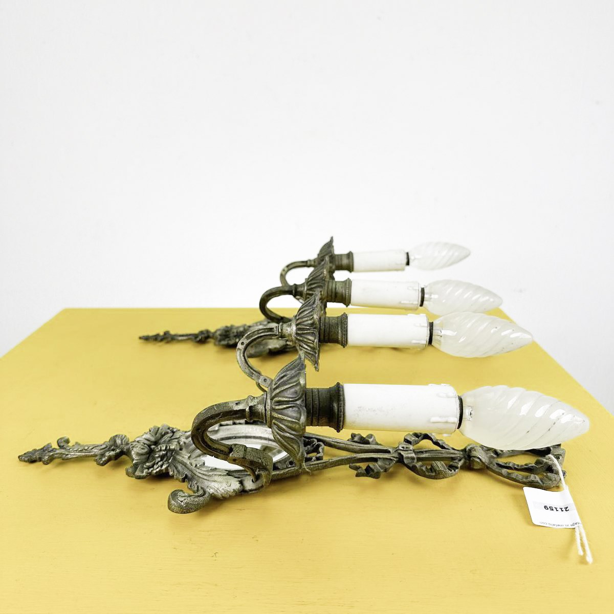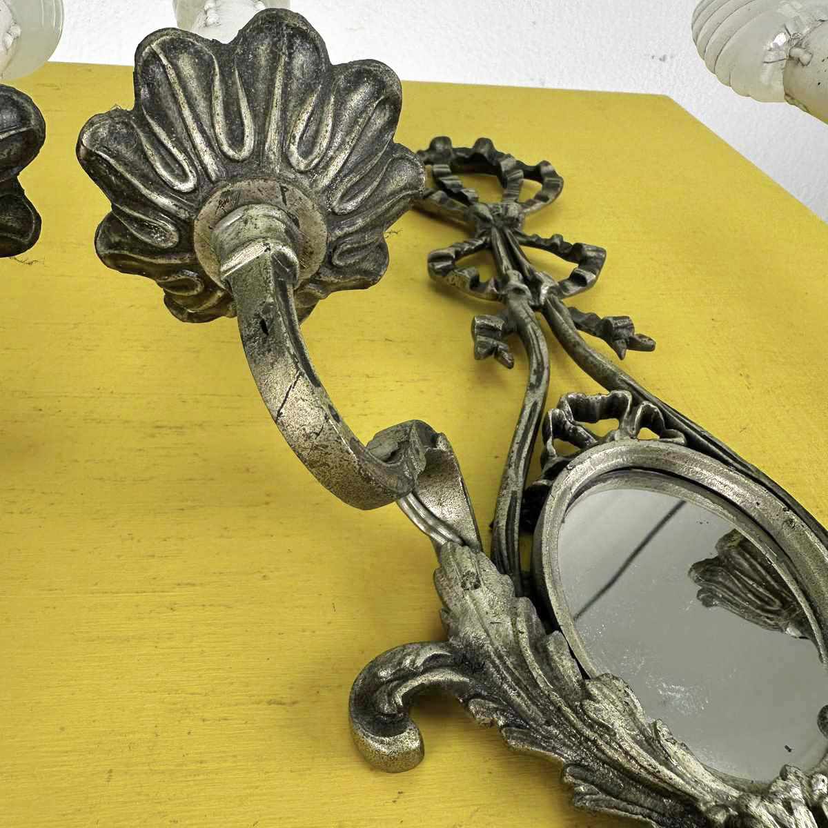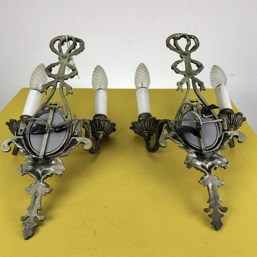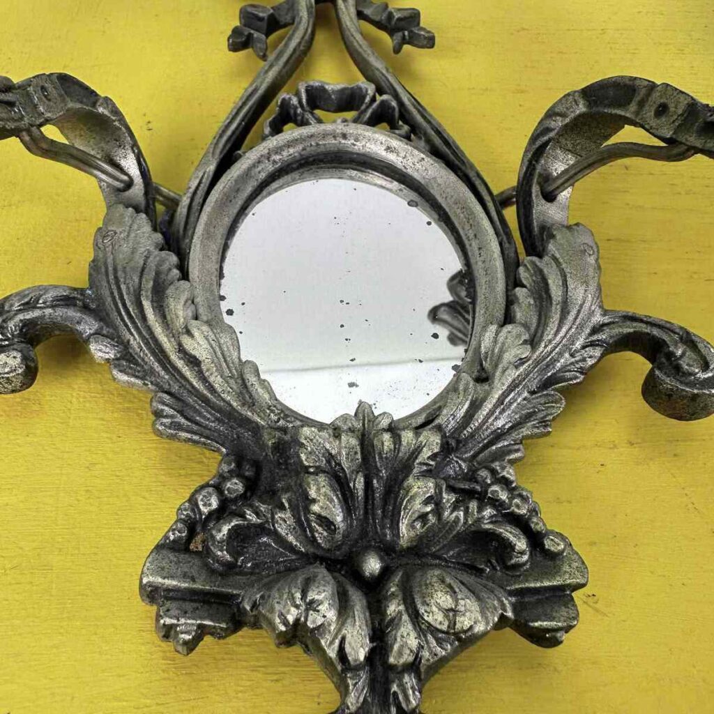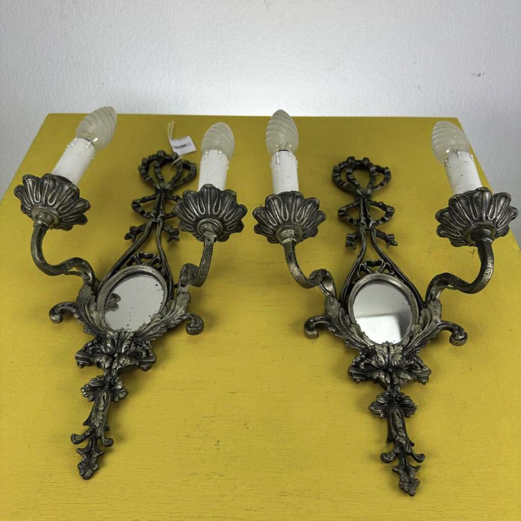 coppia di applique vintage in metallo con specchio