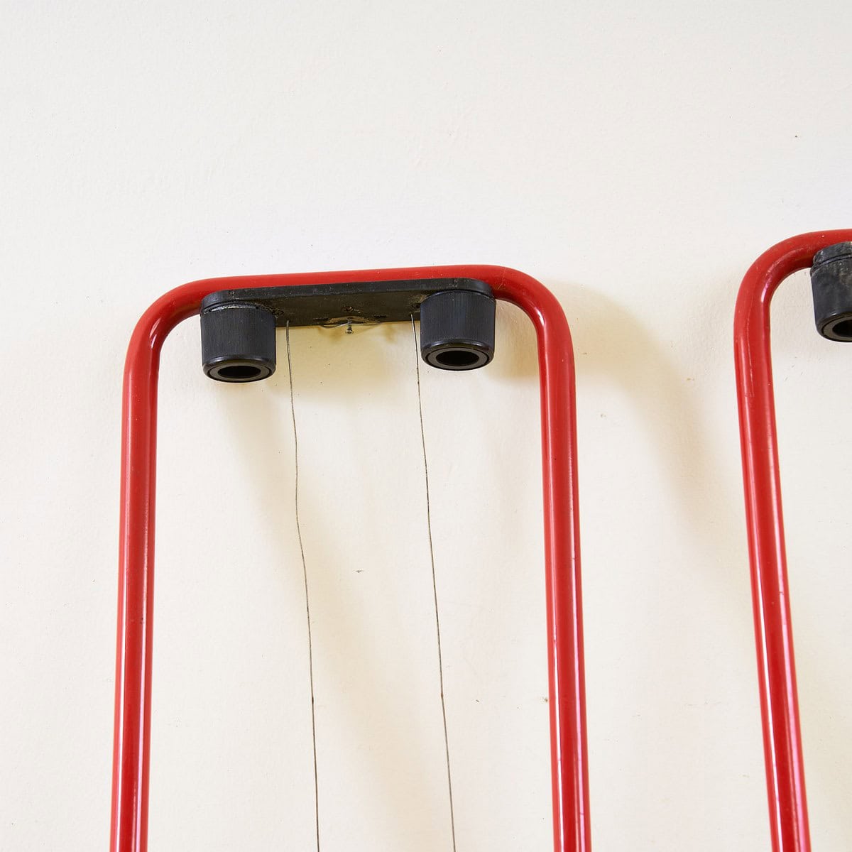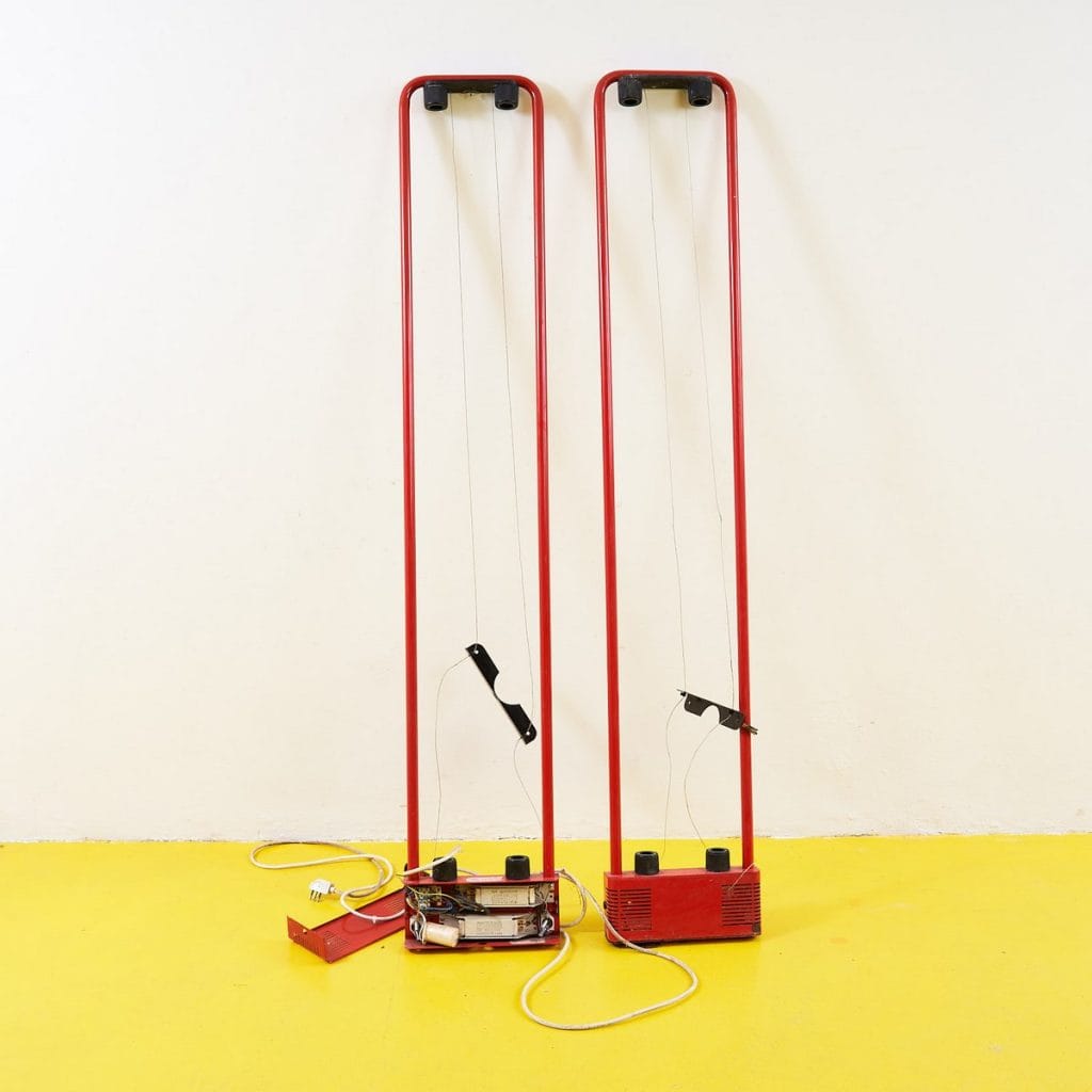 Questa elegante coppia di lampade vintage rappresenta l'eccellenza del design italiano degli anni '70. Realizzate in metallo verniciato di rosso brillante, ogni lampada e' dotata di una... Questa elegante coppia di lampade vintage rappresenta l'eccellenza del design italiano degli anni '70. Realizzate in metallo verniciato di rosso brillante, ogni lampada e' dotata di una base robusta e due steli slanciati, che riflettono uno stile essenziale e moderno. Le lampade sono dotate di attacchi per luci a risparmio energetico, mescolando estetica e funzionalita'. Perfette per dare un tocco retro a qualsiasi ambiente, da case a uffici, queste lampade non solo illuminano, ma arricchiscono l'arredamento con il loro fascino intramontabile. Altro