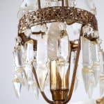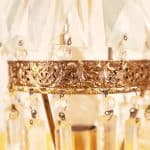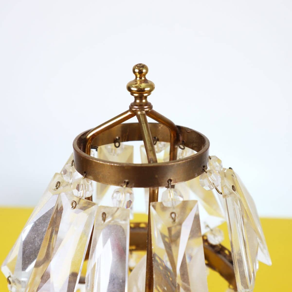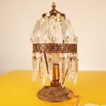 Questo abat-jour, un vero pezzo di design vintage, unisce bellezza e funzionalita'. La struttura in metallo dorato e' ornata da dettagli elaborati, mentre i pendenti in vetro trasparente cat... Questo abat-jour, un vero pezzo di design vintage, unisce bellezza e funzionalita'. La struttura in metallo dorato e' ornata da dettagli elaborati, mentre i pendenti in vetro trasparente catturano la luce, creando un effetto scintillante. Progettato per un'illuminazione delicata, questo oggetto e' perfetto per impreziosire un tavolo da notte o un angolo lettura. Nonostante alcuni segni d'uso, l'illuminazione funziona perfettamente, rendendolo ideale sia per l'uso quotidiano che come elemento decorativo in occasioni speciali. Un'aggiunta elegante a qualsiasi ambiente, questo abat-jour rappresenta la fusione perfetta tra stile e praticita'. Altro