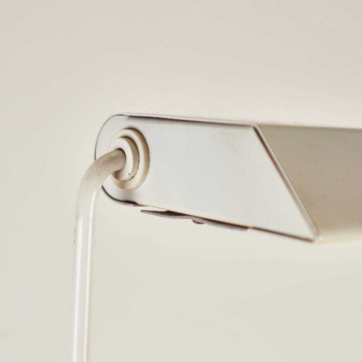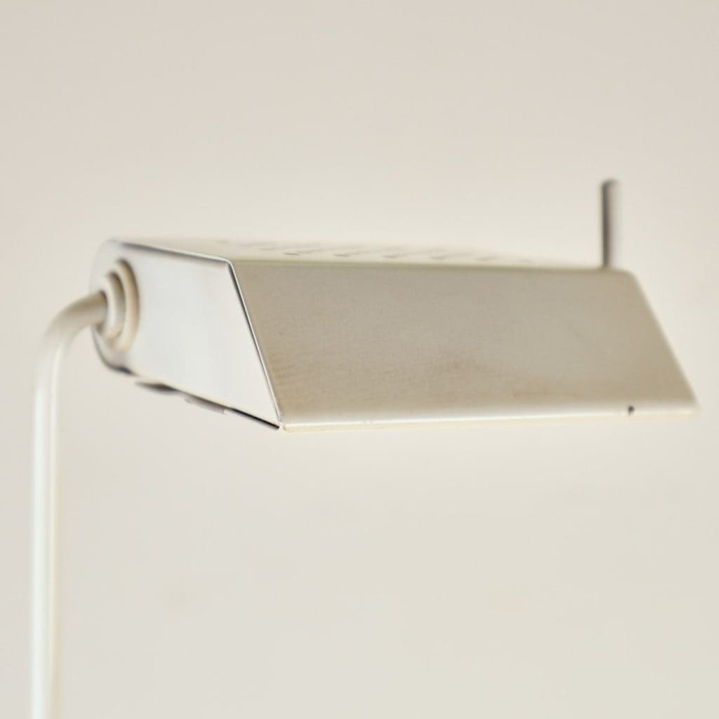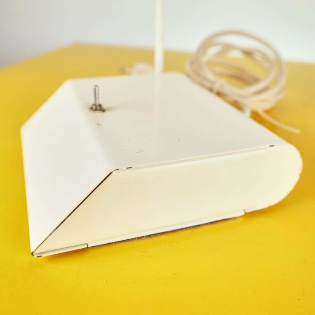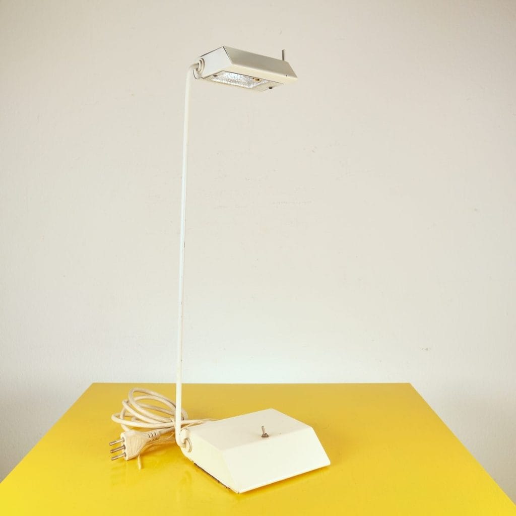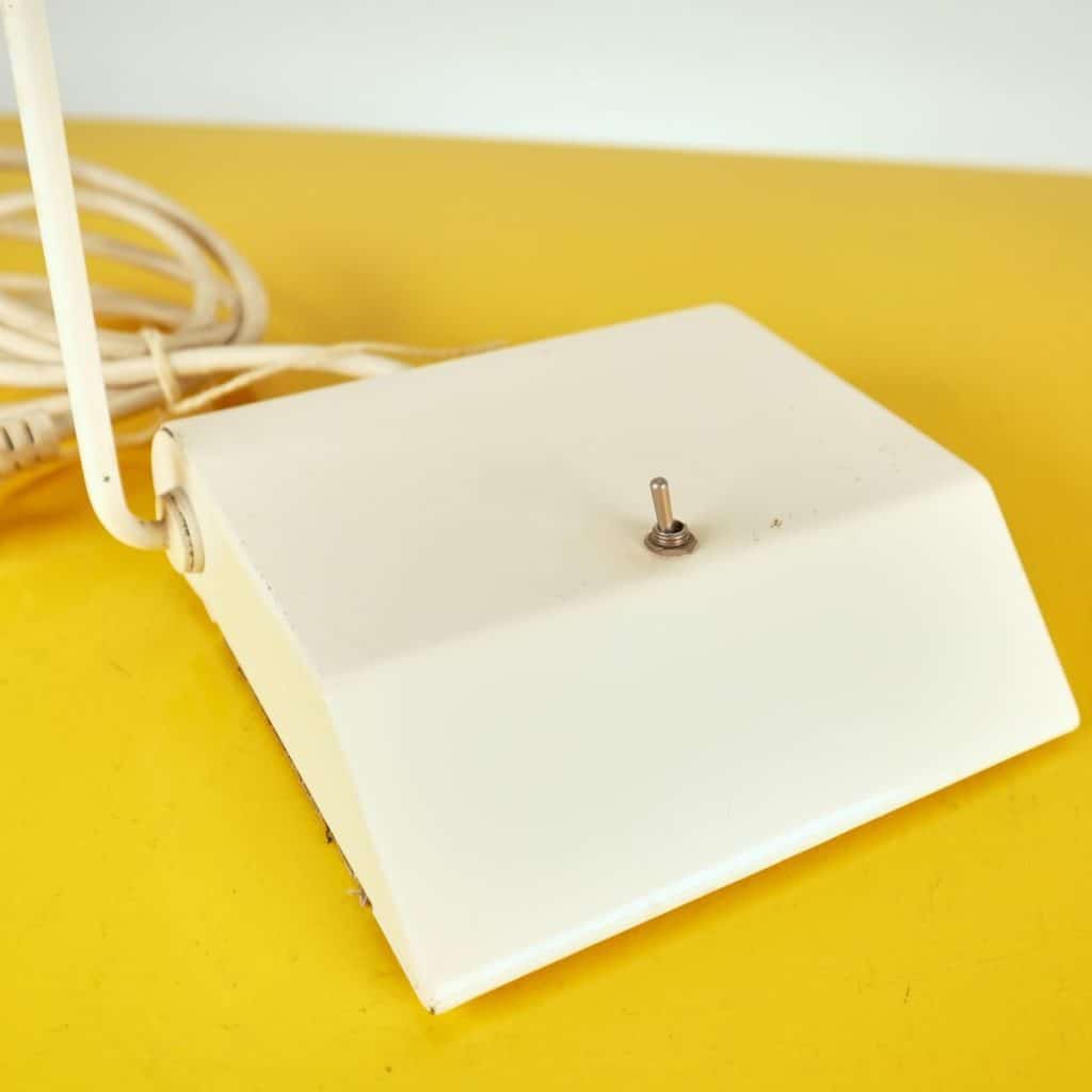Questa lampada da tavolo dal design vintage e' realizzata in metallo bianco, caratterizzata da un elegante braccio regolabile e una base stabile. Perfetta per illuminare spazi di lavoro o come el... Questa lampada da tavolo dal design vintage e' realizzata in metallo bianco, caratterizzata da un elegante braccio regolabile e una base stabile. Perfetta per illuminare spazi di lavoro o come elemento decorativo nel soggiorno, aggiunge un tocco di stile retro' agli interni moderni. Presenta un interruttore centrale e un riflettore in vetro, contribuendo a diffondere la luce con calore e uniformita'. Le condizioni sono buone, con segni minimi di usura che non ne compromettono l'estetica. Un oggetto ideale per chi ama un mix di funzionalita' e design. Altro