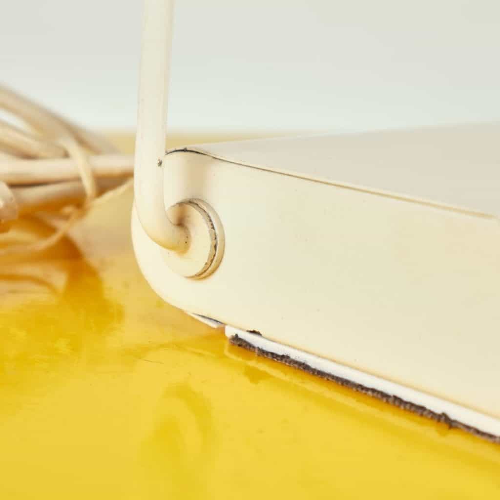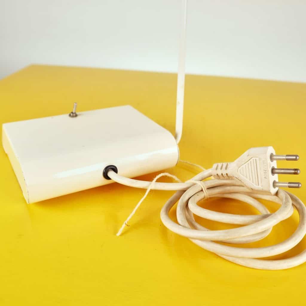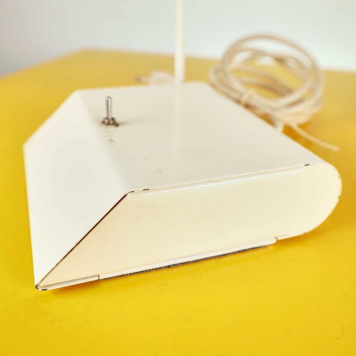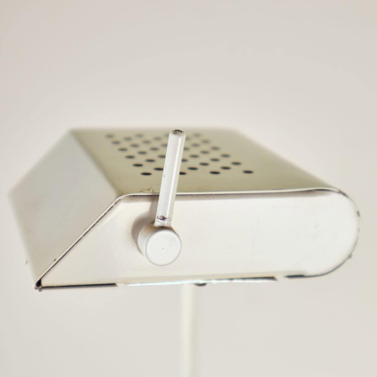 Questa lampada da tavolo dal design vintage e' realizzata in metallo bianco, caratterizzata da un elegante braccio regolabile e una base stabile. Perfetta per illuminare spazi di lavoro o come el... Questa lampada da tavolo dal design vintage e' realizzata in metallo bianco, caratterizzata da un elegante braccio regolabile e una base stabile. Perfetta per illuminare spazi di lavoro o come elemento decorativo nel soggiorno, aggiunge un tocco di stile retro' agli interni moderni. Presenta un interruttore centrale e un riflettore in vetro, contribuendo a diffondere la luce con calore e uniformita'. Le condizioni sono buone, con segni minimi di usura che non ne compromettono l'estetica. Un oggetto ideale per chi ama un mix di funzionalita' e design. Altro
