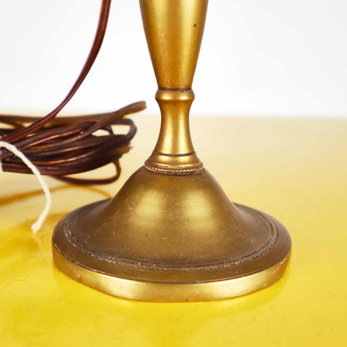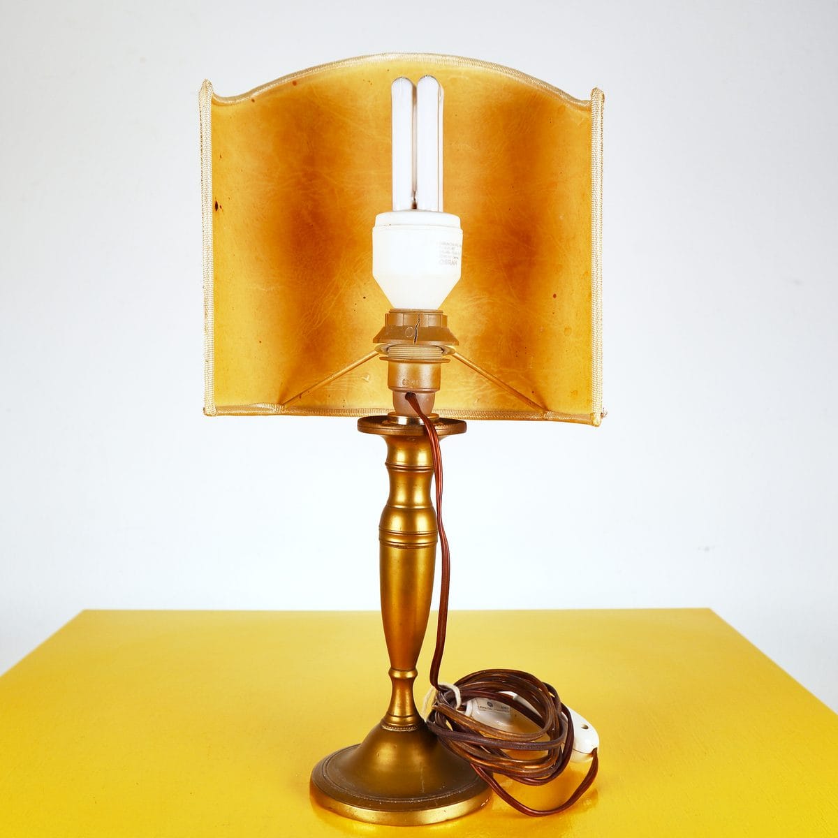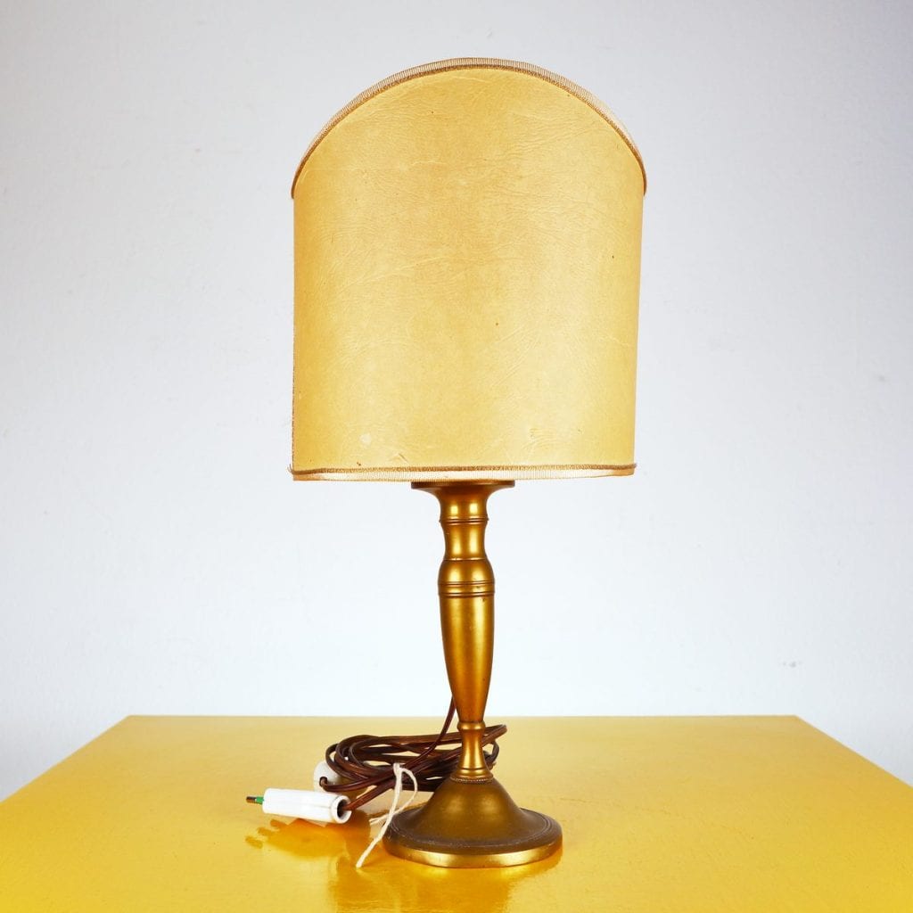 Questa elegante lampada da tavolo in ottone e' un perfetto esempio di design vintage degli anni '60. Caratterizzata da una base robusta e un fusto snodato, la lampada presenta un paralume in... Questa elegante lampada da tavolo in ottone e' un perfetto esempio di design vintage degli anni '60. Caratterizzata da una base robusta e un fusto snodato, la lampada presenta un paralume in tessuto color crema, leggermente usurato ma ancora di grande fascino. La lampada e' dotata di un sistema di illuminazione funzionante e si adatta bene in ambienti retro, moderni o shabby chic. Le finiture in ottone conferiscono un tocco di calore e classe. Ideale per illuminare il tuo angolo lettura o come oggetto decorativo in soggiorno. Altro
