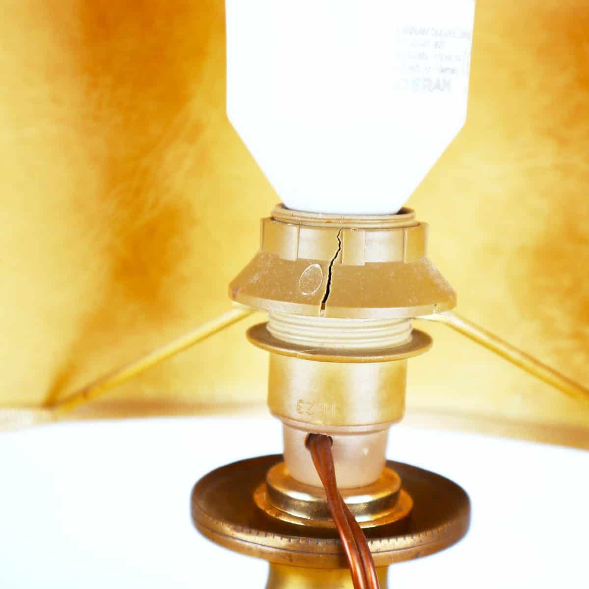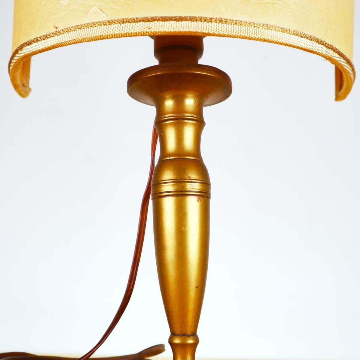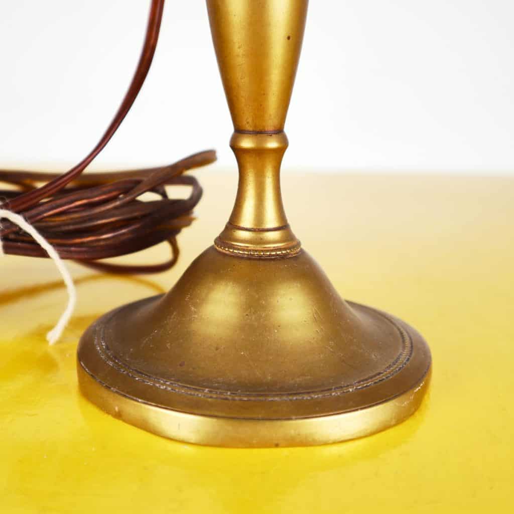 Questa elegante lampada da tavolo in ottone e' un perfetto esempio di design vintage degli anni '60. Caratterizzata da una base robusta e un fusto snodato, la lampada presenta un paralume in... Questa elegante lampada da tavolo in ottone e' un perfetto esempio di design vintage degli anni '60. Caratterizzata da una base robusta e un fusto snodato, la lampada presenta un paralume in tessuto color crema, leggermente usurato ma ancora di grande fascino. La lampada e' dotata di un sistema di illuminazione funzionante e si adatta bene in ambienti retro, moderni o shabby chic. Le finiture in ottone conferiscono un tocco di calore e classe. Ideale per illuminare il tuo angolo lettura o come oggetto decorativo in soggiorno. Altro